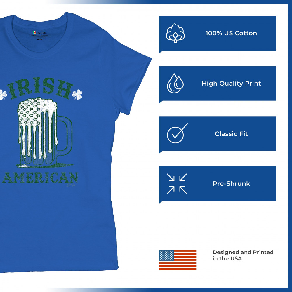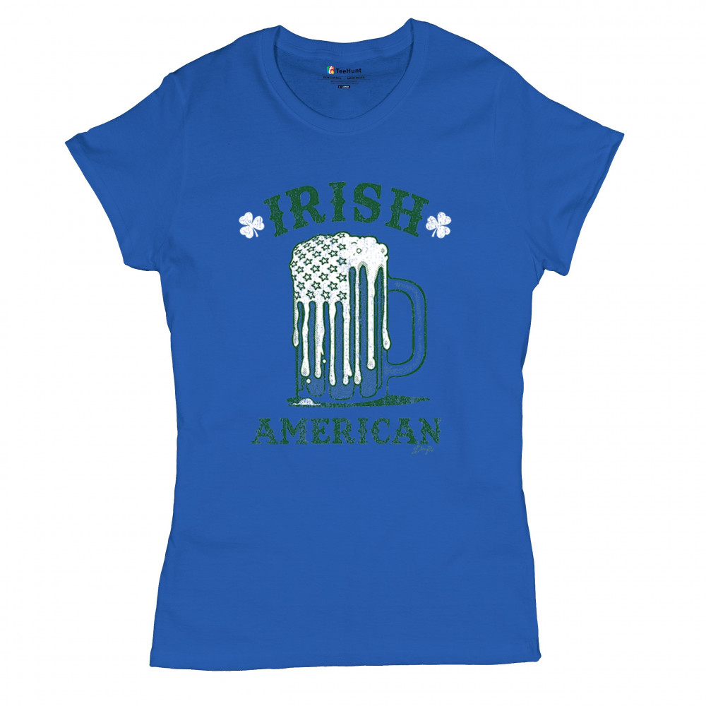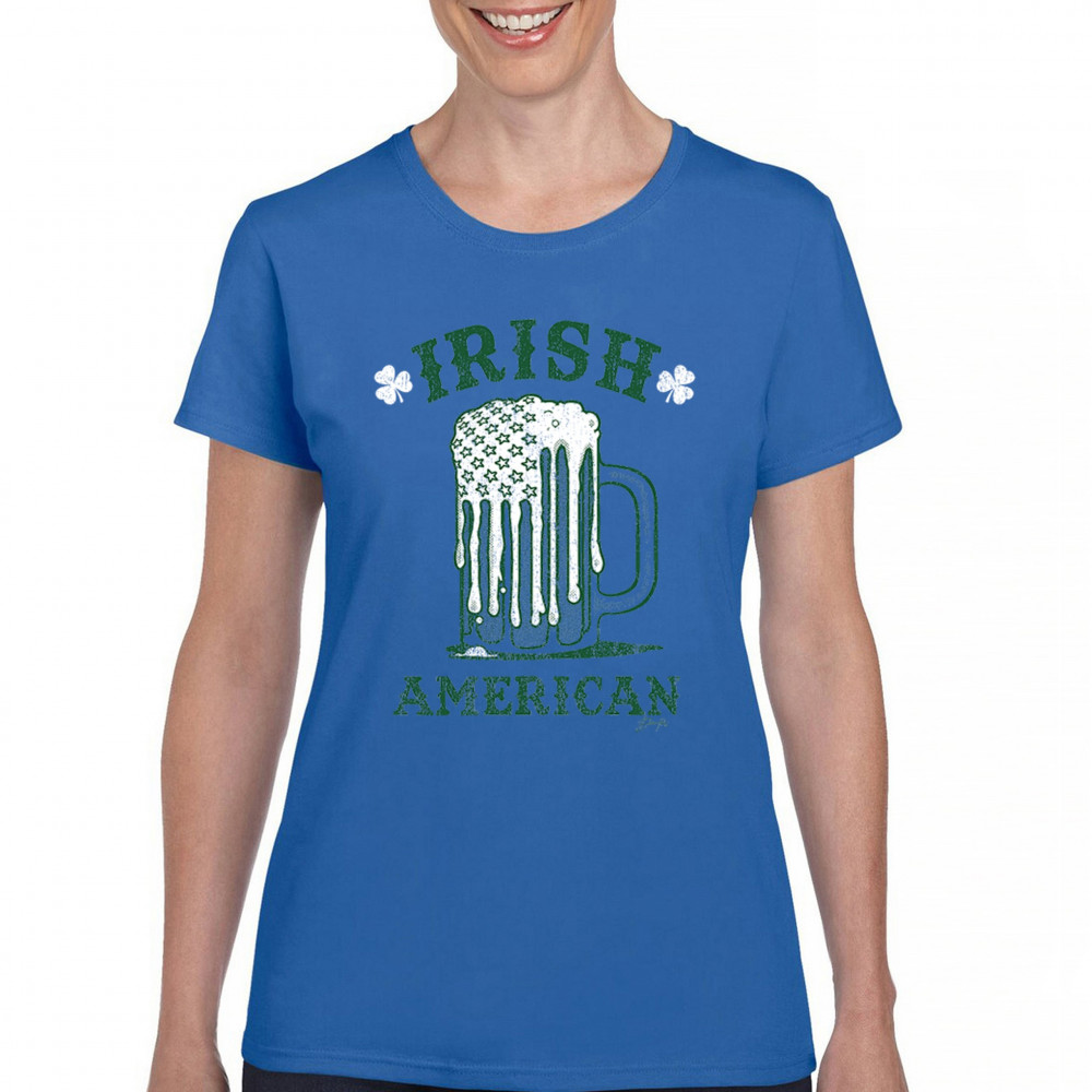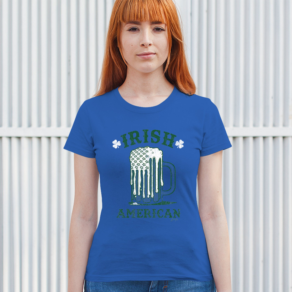 IRISH AMERICAN ST PATRICK'S DAY t-shirt shamrock shenanigans beer women's tee royal blue