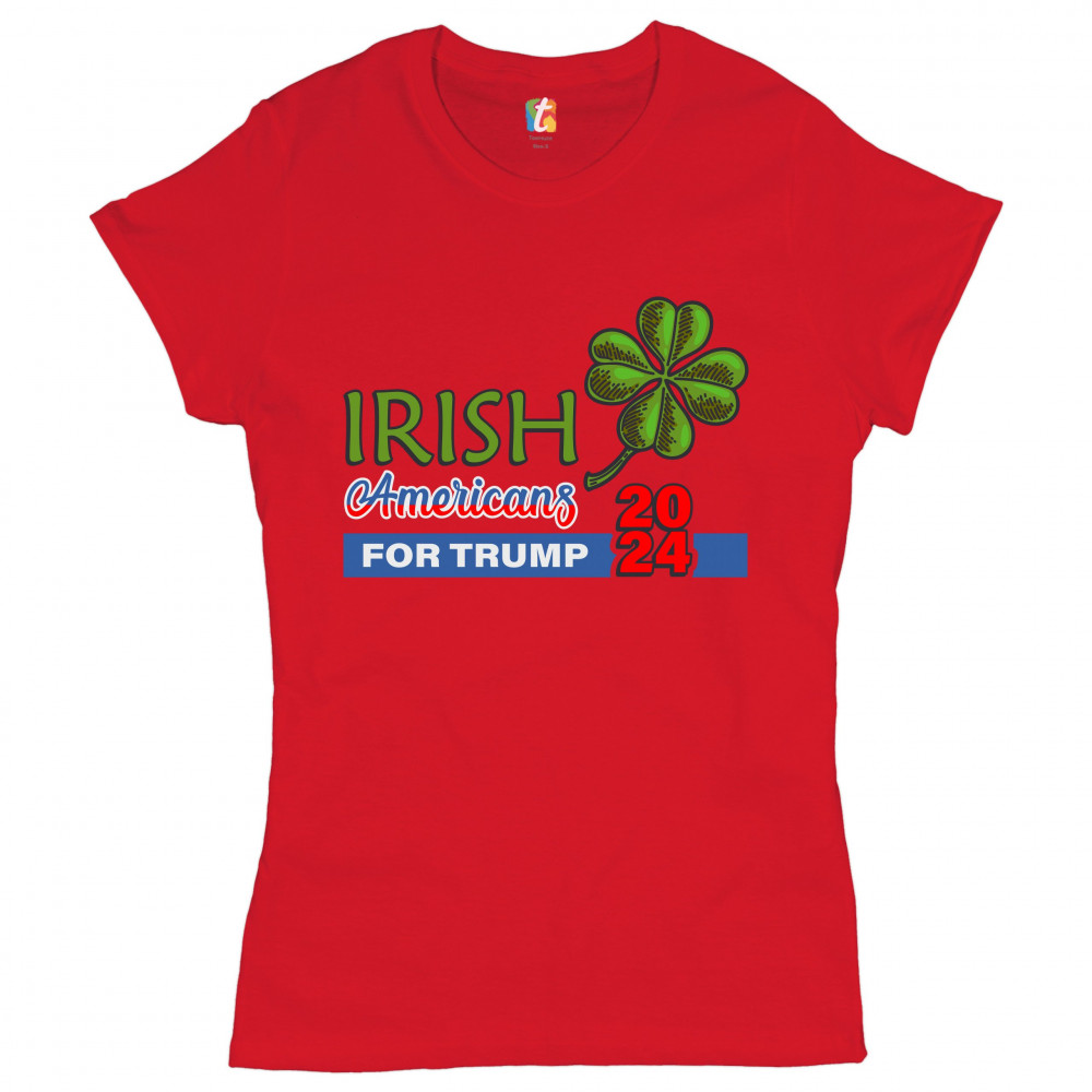 IRISH AMERICANS FOR TRUMP t-shirt pro donald trump 2024 shamrock women's tee red