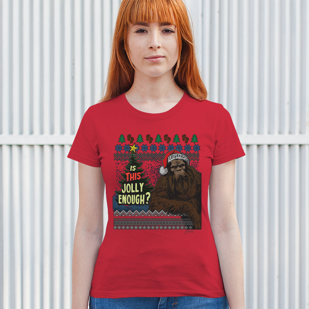 Add humor to your holiday season with the "Is This Jolly Enough?" design, featuring a legendary creature ready for Christmas cheer. Perfect for holiday gatherings and cozy winter nights!