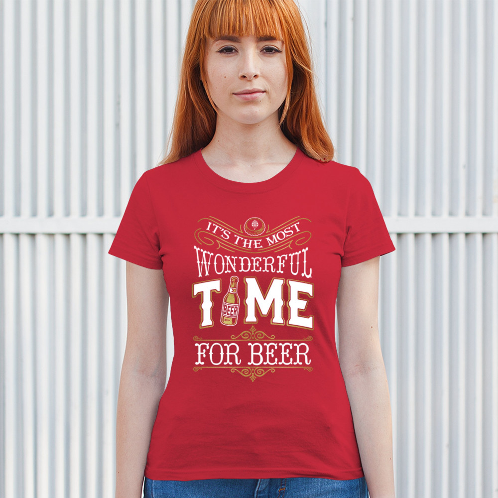 Bring some holiday cheer to your wardrobe with our "It's The Most Wonderful Time for Beer" design. Featuring a festive beer bottle and playful text, this design is perfect for adding humor to holiday gatherings, beer festivals, or any casual outing. Ideal for beer lovers and brew enthusiasts, it makes a fantastic gift for those who appreciate beer-themed fun. Embrace the season and your love for beer with this delightful and humorous design!