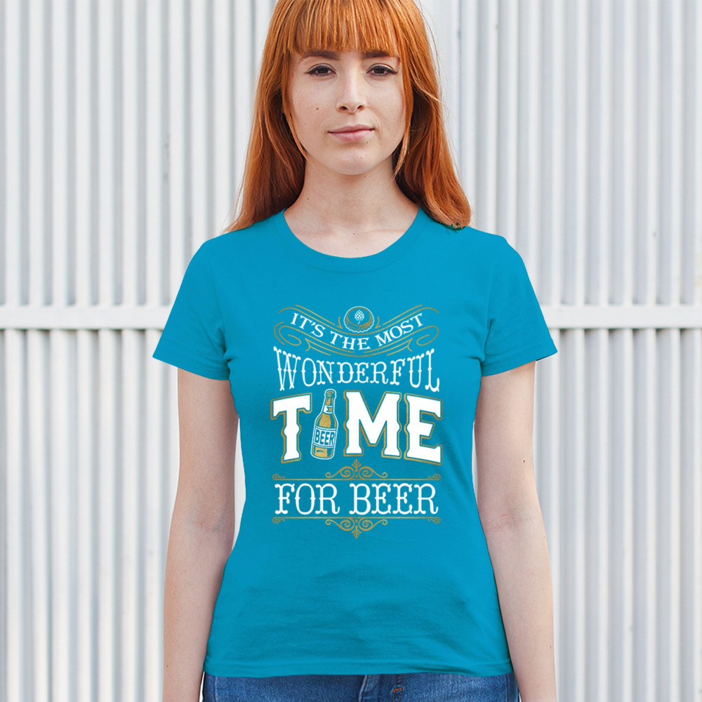 Bring some holiday cheer to your wardrobe with our "It's The Most Wonderful Time for Beer" design. Featuring a festive beer bottle and playful text, this design is perfect for adding humor to holiday gatherings, beer festivals, or any casual outing. Ideal for beer lovers and brew enthusiasts, it makes a fantastic gift for those who appreciate beer-themed fun. Embrace the season and your love for beer with this delightful and humorous design!