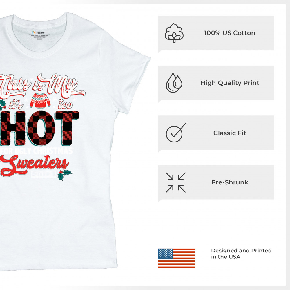 Stay festive without the extra warmth! This "Too Hot for Ugly Christmas Sweaters" shirt is perfect for those who love Christmas cheer with a lighthearted touch.