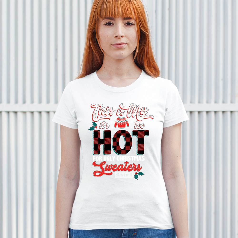 This "Too Hot for Ugly Christmas Sweaters" shirt is a festive twist on holiday attire for those who prefer something lighter than the classic sweater. Featuring bold plaid accents and playful holiday motifs, this design brings cheer without the extra layers. Ideal for Secret Santa, cozy gatherings, and all holiday celebrations, it’s a perfect choice for anyone looking to embrace Christmas fun with a touch of humor and style. Spread the holiday joy with this warm-hearted, lightweight option!