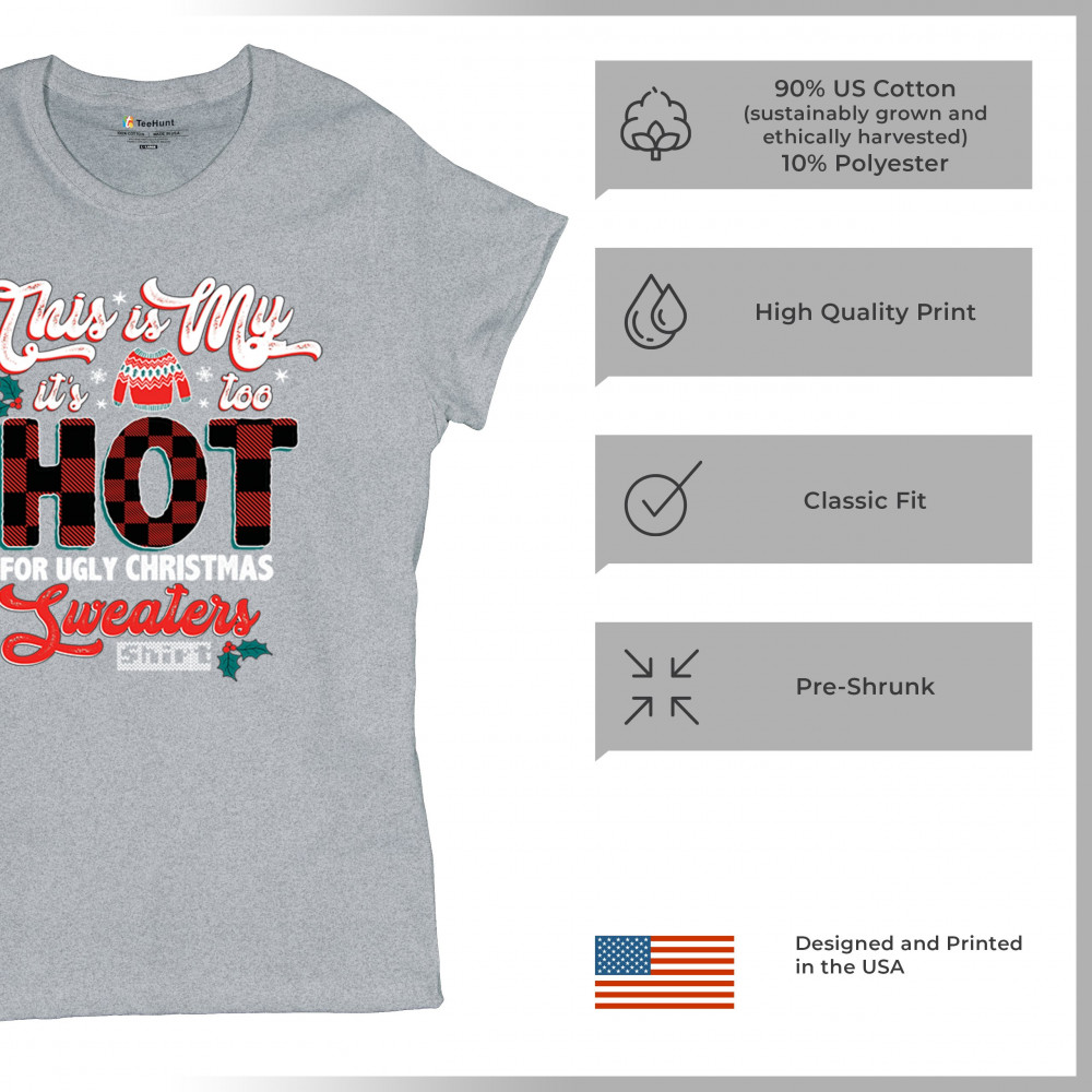 Stay festive without the extra warmth! This "Too Hot for Ugly Christmas Sweaters" shirt is perfect for those who love Christmas cheer with a lighthearted touch.