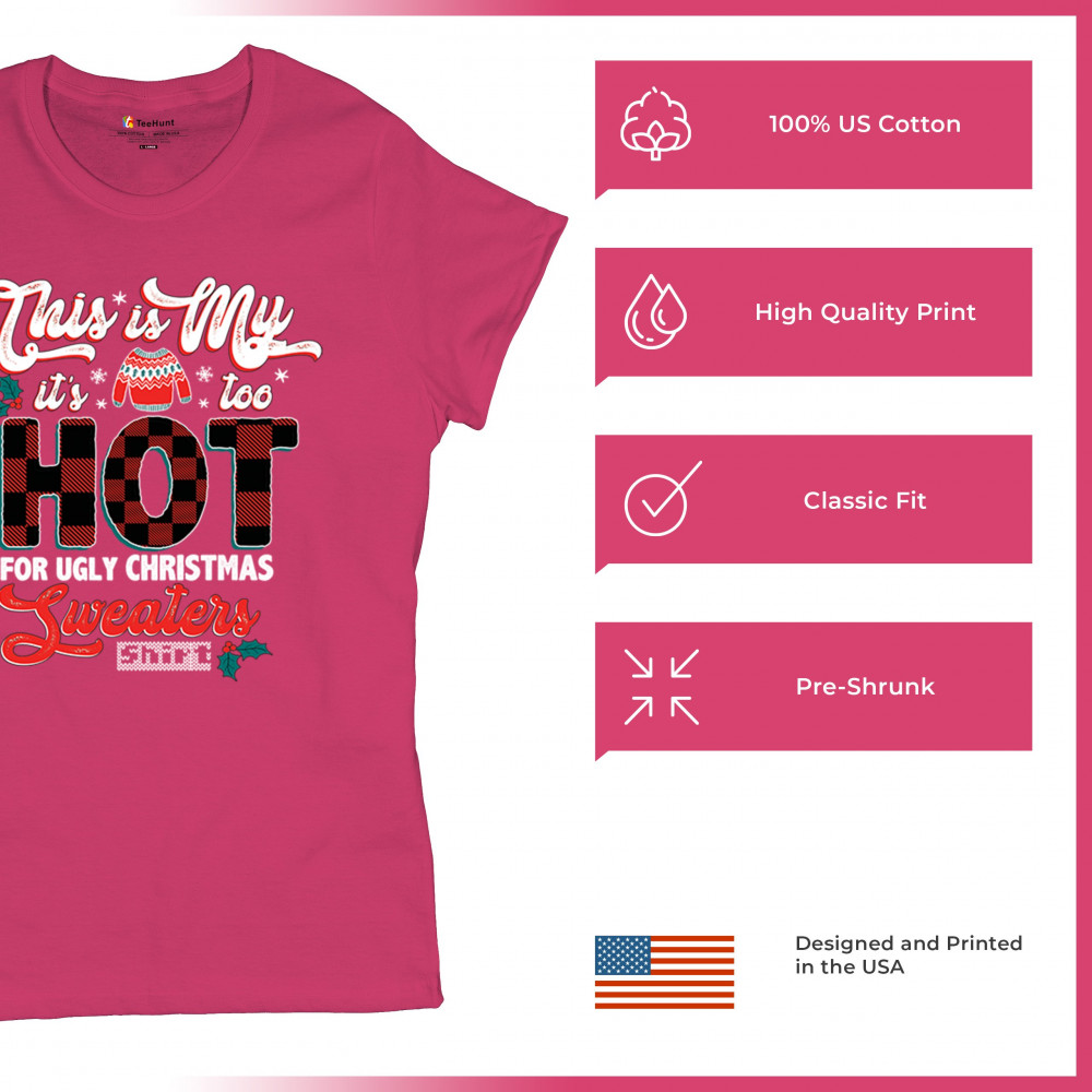 Stay festive without the extra warmth! This "Too Hot for Ugly Christmas Sweaters" shirt is perfect for those who love Christmas cheer with a lighthearted touch.