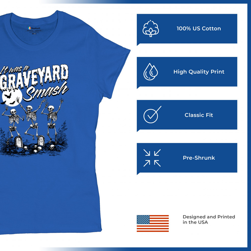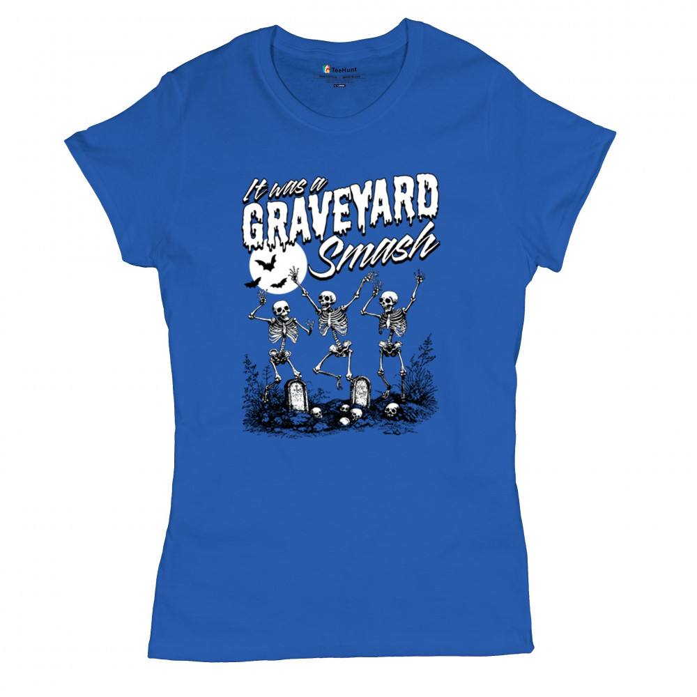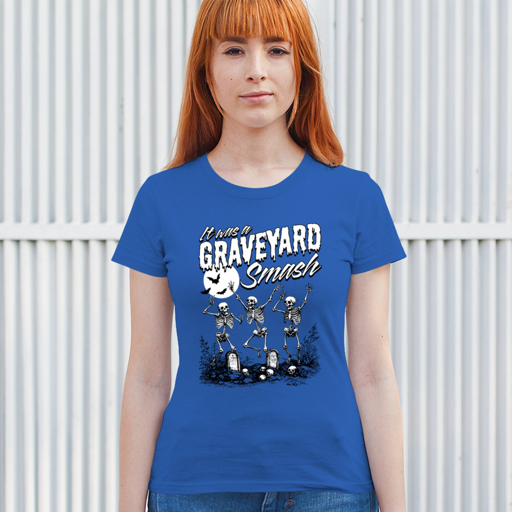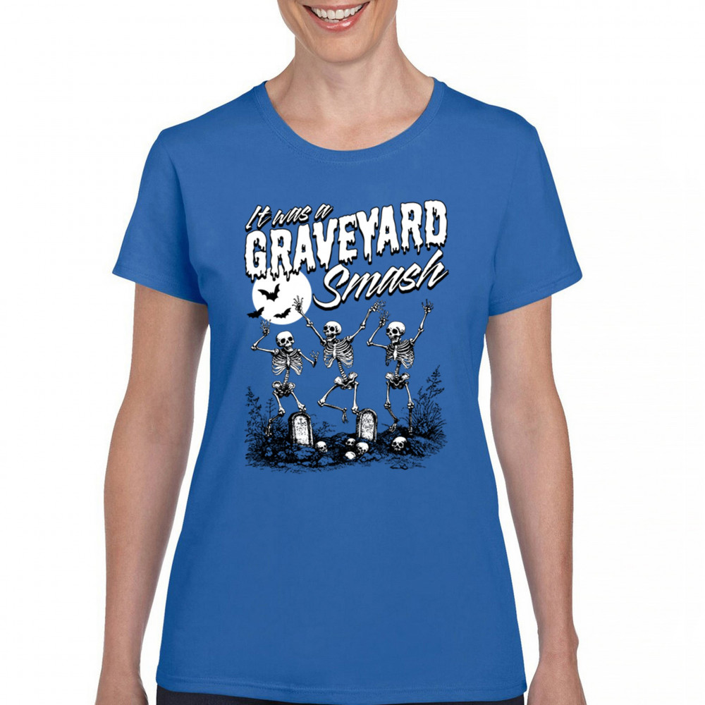 Add a touch of spooky fun to your Halloween attire with this "Graveyard Smash" design, showcasing skeletons dancing under the moonlight in a graveyard. Ideal for anyone who loves Halloween, this graphic tee is perfect for parties, haunted houses, or casual trick-or-treating. Made from high-quality materials, it offers both comfort and style, ensuring you look great while embracing the festive spirit. Available in multiple sizes, this shirt is a must-have for your Halloween collection.
