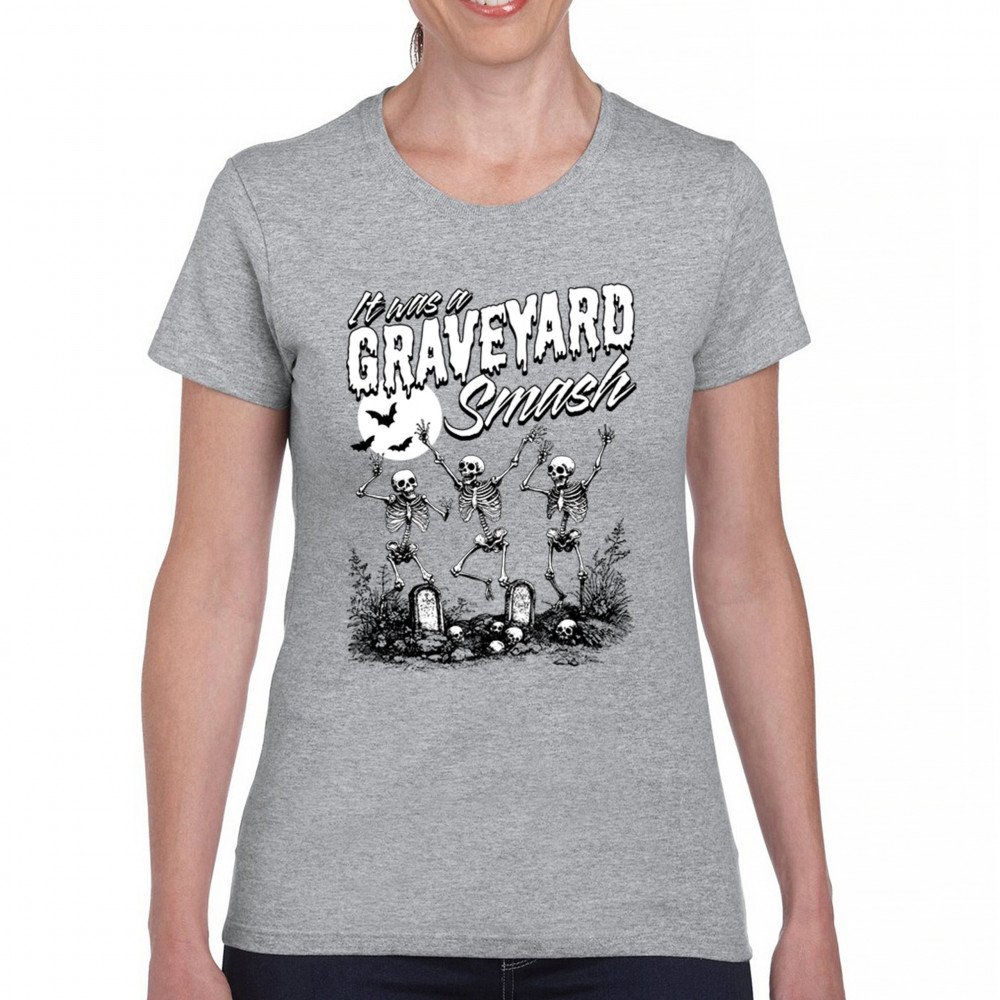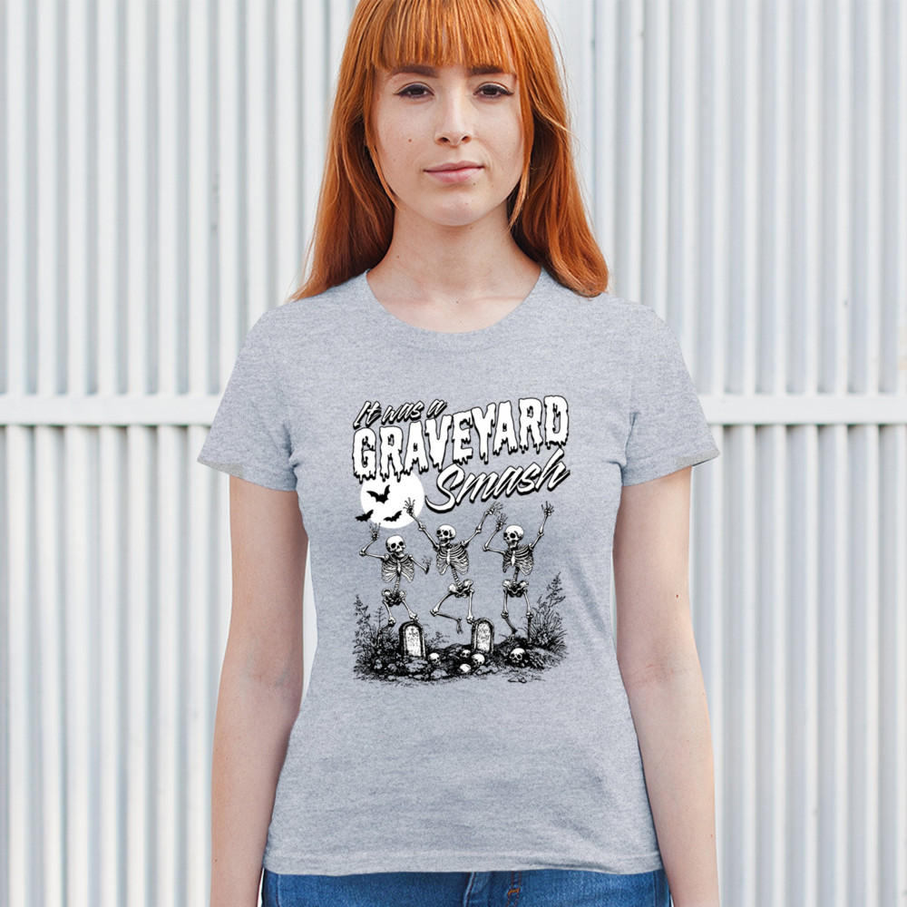 Add a touch of spooky fun to your Halloween attire with this "Graveyard Smash" design, showcasing skeletons dancing under the moonlight in a graveyard. Ideal for anyone who loves Halloween, this graphic tee is perfect for parties, haunted houses, or casual trick-or-treating. Made from high-quality materials, it offers both comfort and style, ensuring you look great while embracing the festive spirit. Available in multiple sizes, this shirt is a must-have for your Halloween collection.