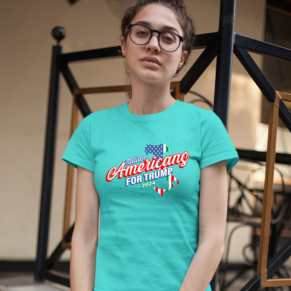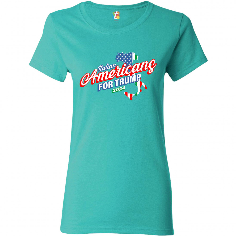 ITALIAN AMERICANS FOR TRUMP 2024 t-shirt keep america great maga women's tee light blue