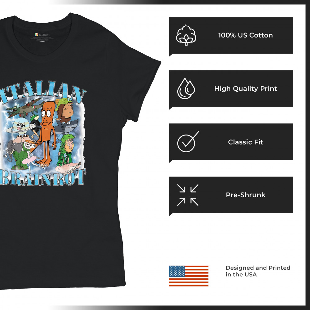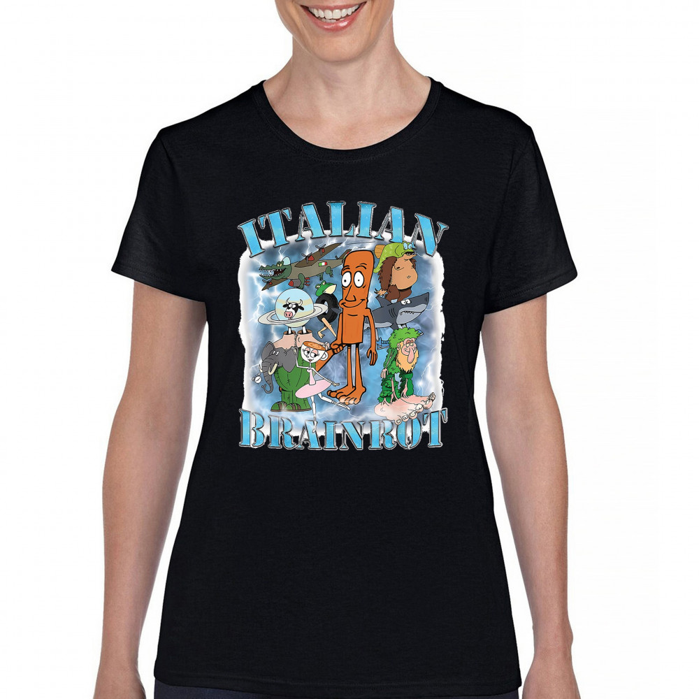 Unleash pure meme chaos with our Italian Brainrot shirt featuring iconic Gen Z fever dream characters like Chimpanzini Bananini, Tralalero Tralala, and Bombardino crocodile. This absurd design captures viral humor, ironic fashion, and chaotic energy, perfect for cursed meme fans, TikTok lovers, Gen Alpha vibes, and surreal internet style.