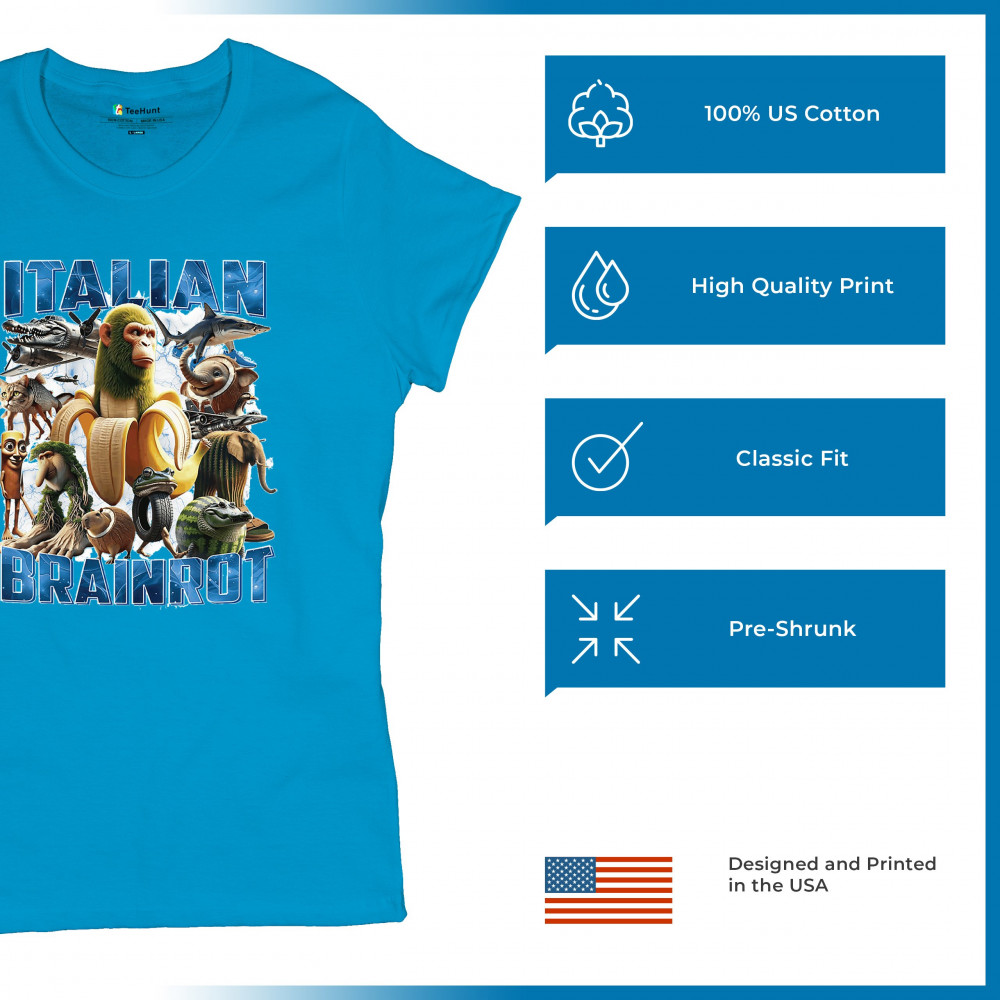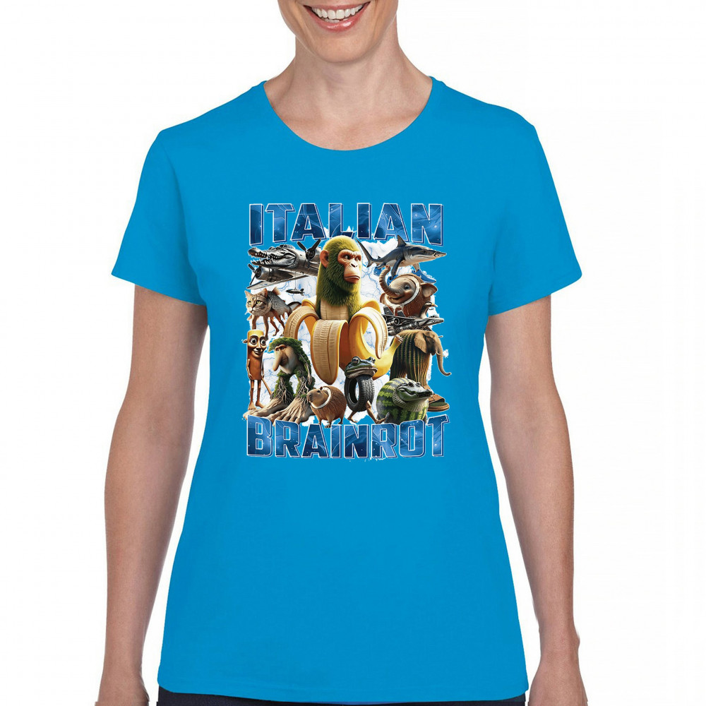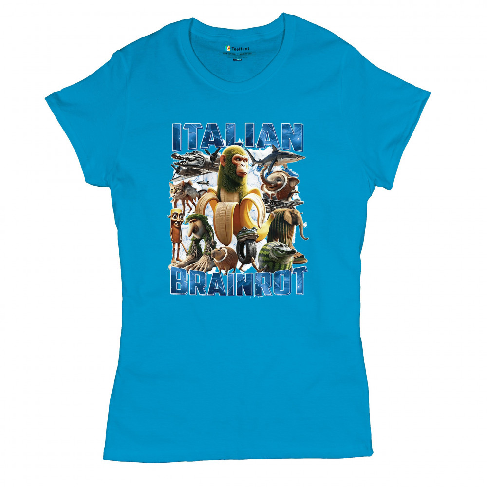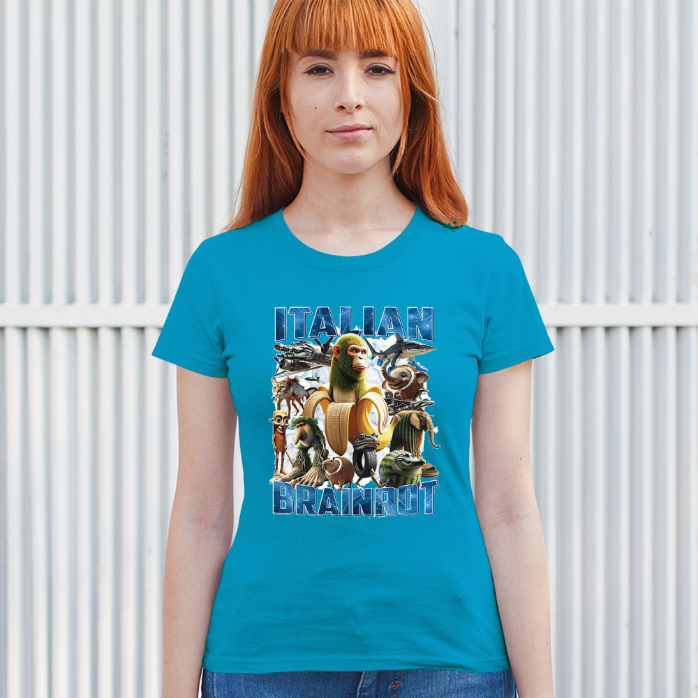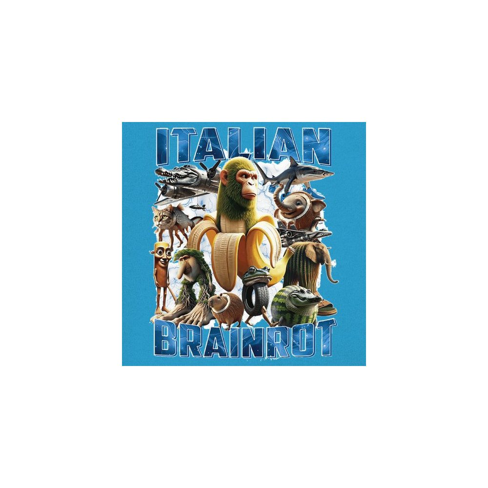 This design captures the full force of Italian brainrot—bananas, sharks, monkeys, and meme beasts collide in an unfiltered internet-core explosion. Perfect for fans of cursed humor, Gen Z trends, absurd fashion, TikTok memes, ironic style, surreal pop art, chaotic culture, digital nonsense, Gen Alpha brainrot, and hyper-online energy.