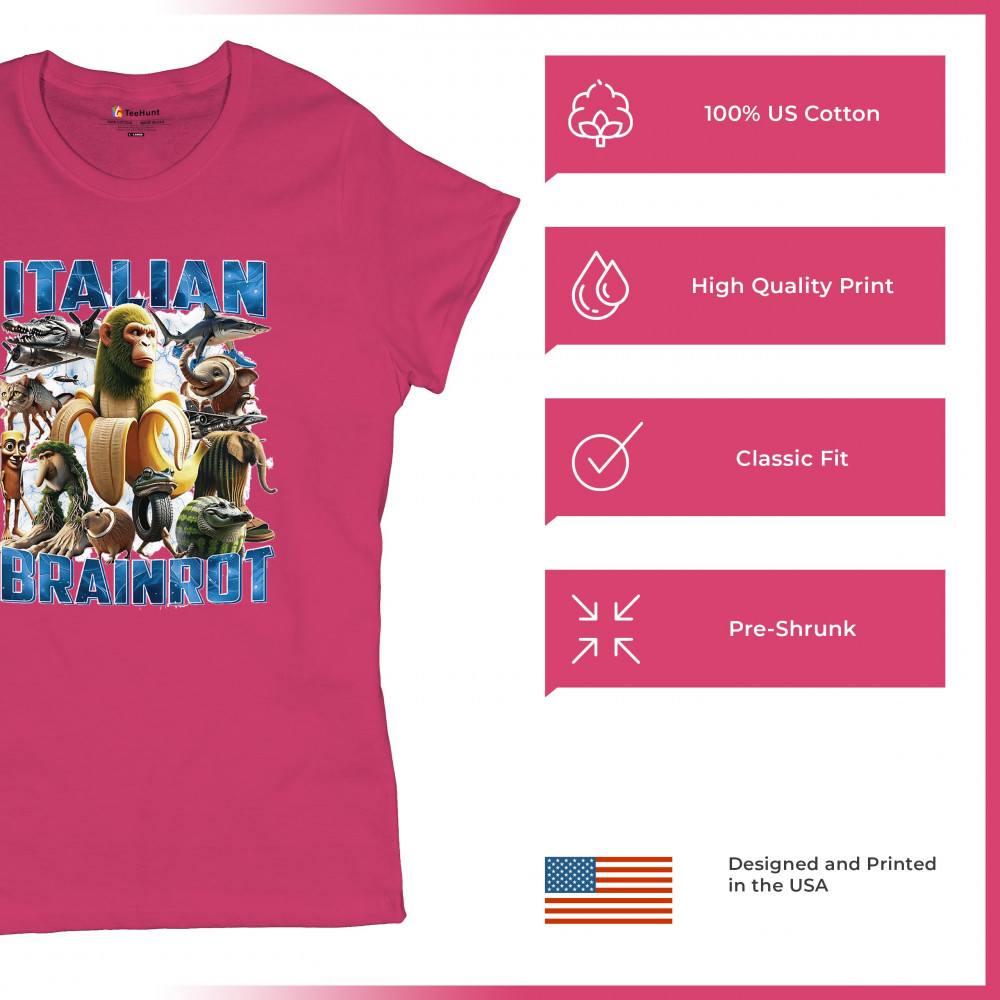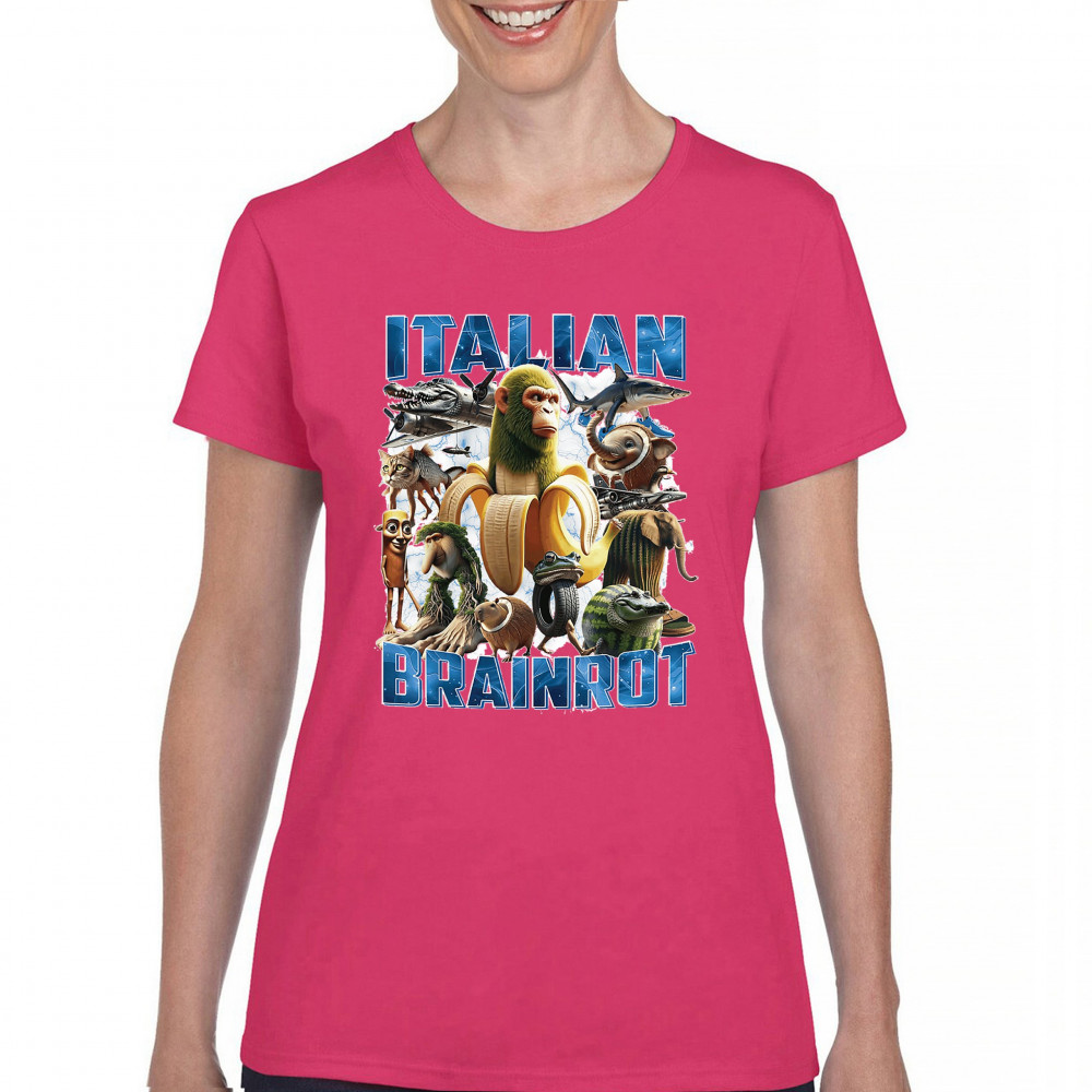 This design captures the full force of Italian brainrot—bananas, sharks, monkeys, and meme beasts collide in an unfiltered internet-core explosion. Perfect for fans of cursed humor, Gen Z trends, absurd fashion, TikTok memes, ironic style, surreal pop art, chaotic culture, digital nonsense, Gen Alpha brainrot, and hyper-online energy.