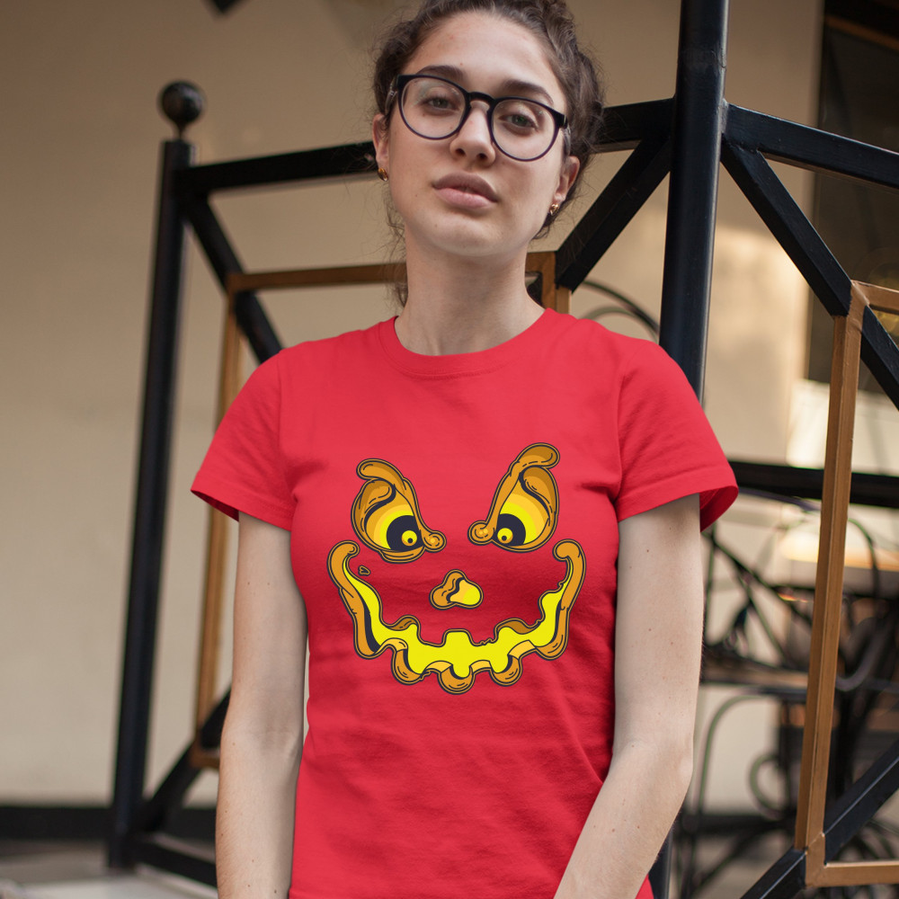 JACK-O-LANTERN PUMPKIN FACE t-shirt trick-or-treat halloween women's tee red
