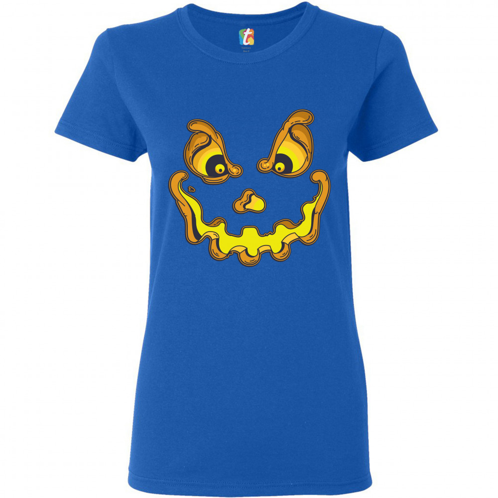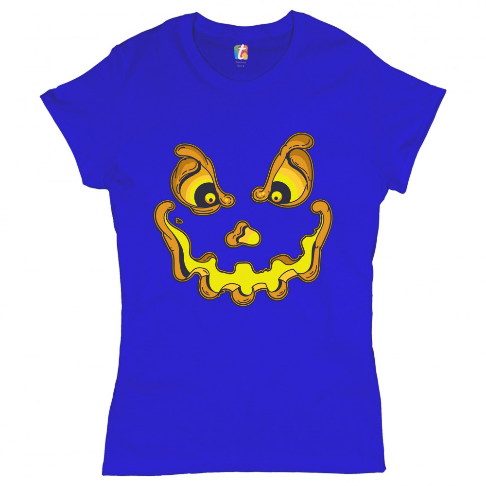 JACK-O-LANTERN PUMPKIN FACE t-shirt trick-or-treat halloween women's tee royal blue