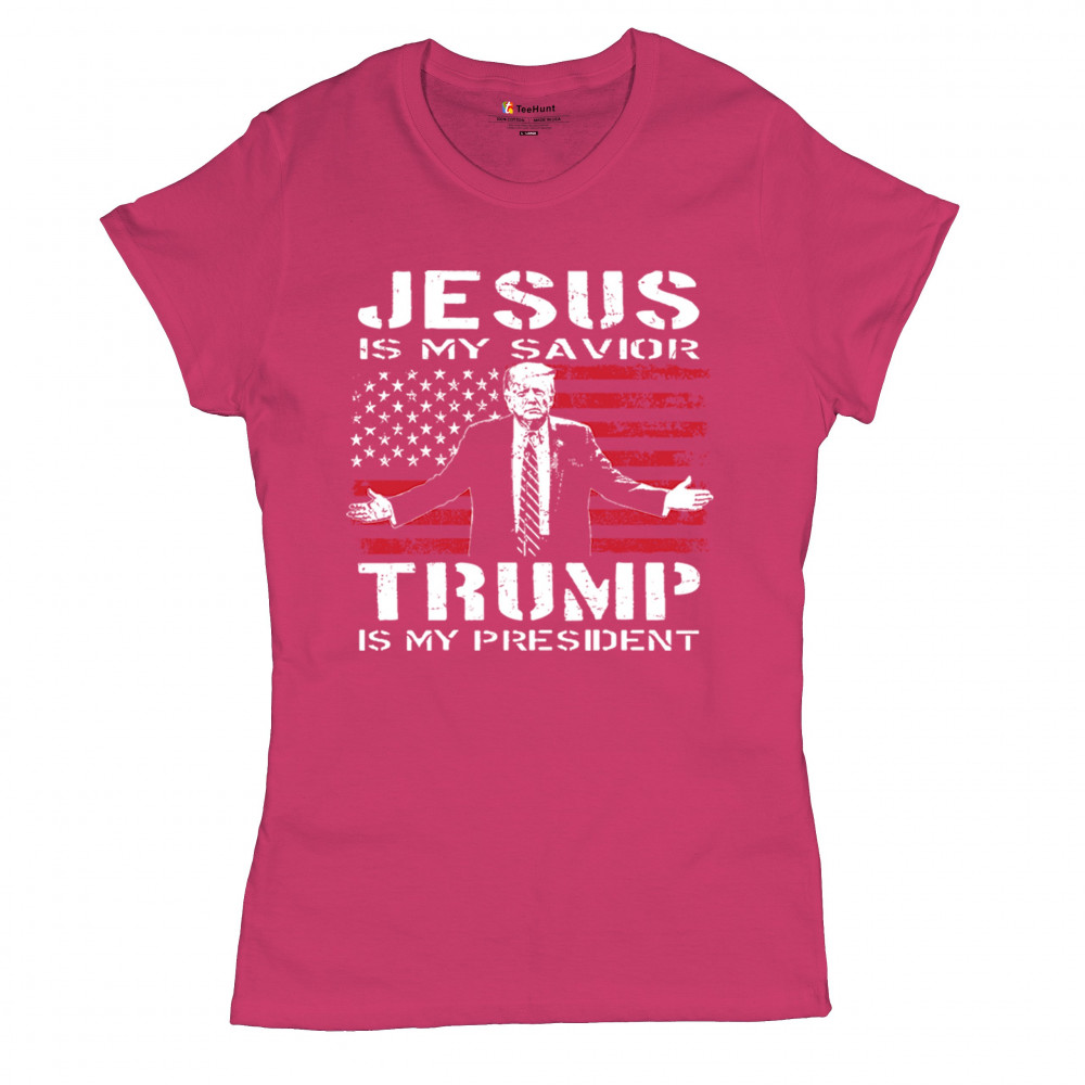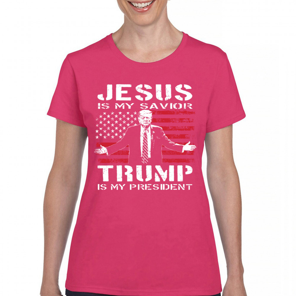 Express your unwavering faith and patriotism with the "Jesus is My Savior, Trump is My President" design. Perfect for conservatives, Republicans, and Trump supporters, this bold graphic combines spiritual devotion with a commitment to America First values. Celebrate the 47th President and the fight for freedom with this standout piece at rallies, events, or as a unique gift.