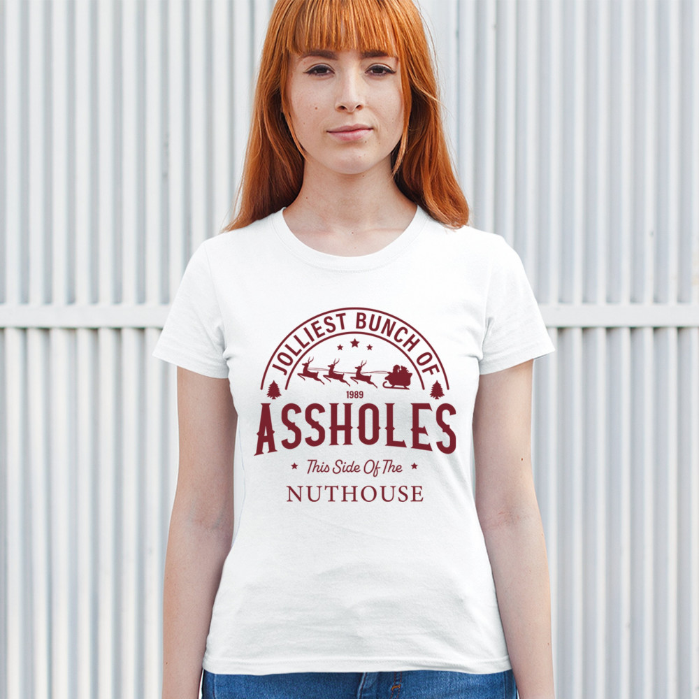 Celebrate the holidays with laughter in this “Jolliest Bunch of Ashols†design, mixing Santa Claus, reindeer, and sarcastic humor. Perfect for funny Christmas gatherings, Secret Santa parties, or holiday nights with friends, this festive gag gift adds Jolly AF energy, adult humor flair, and a touch of nuthouse cheer to your Christmas style.