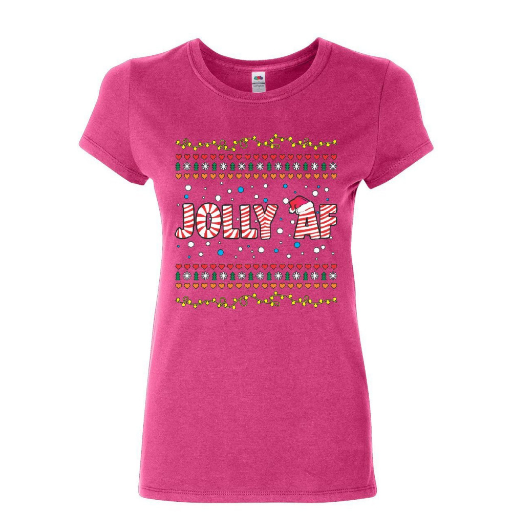 JOLLY AF women's t-shirt funny christmas eve holiday spirit xmas santa shirt hot pink