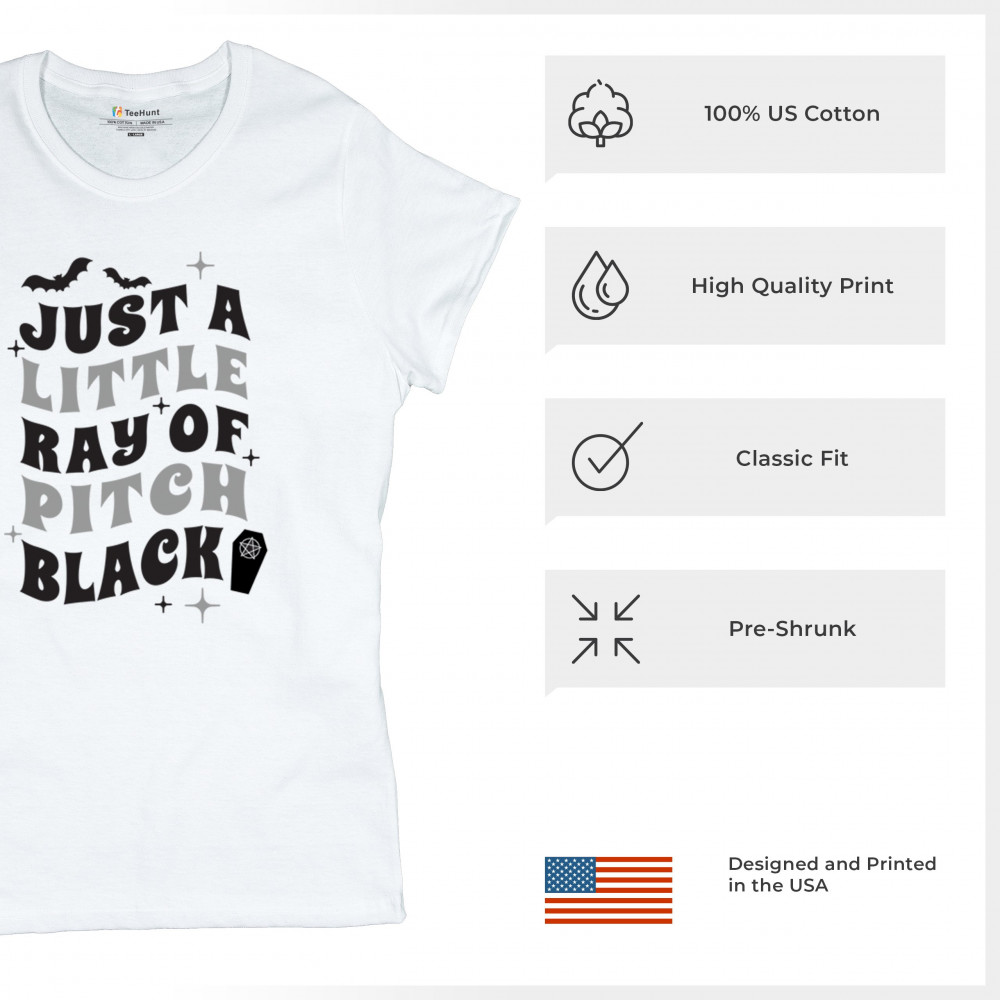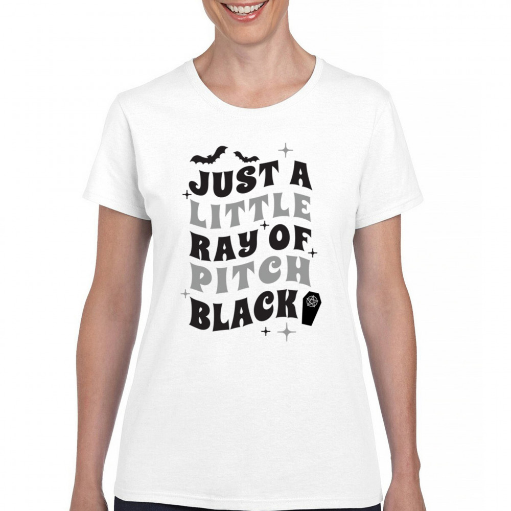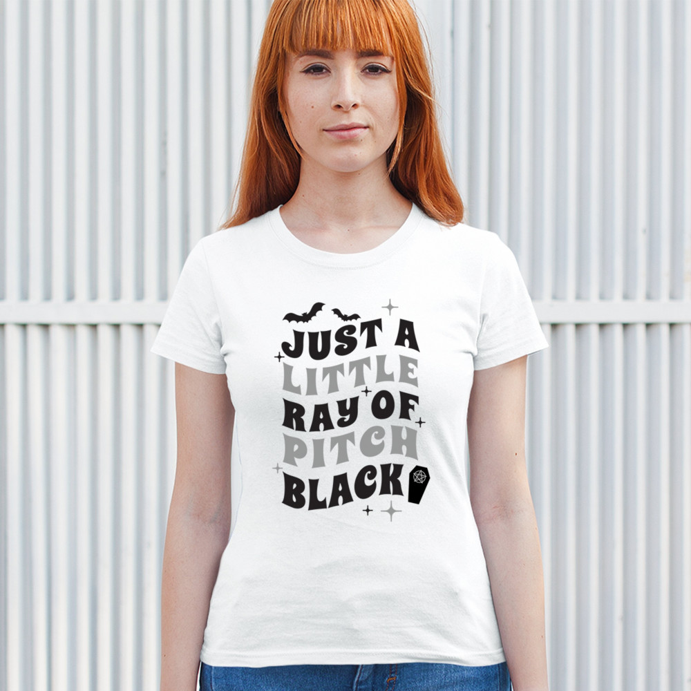Showcase your dark humor with the "Just a Little Ray of Pitch Black" design—perfect for Halloween or everyday gothic style.
