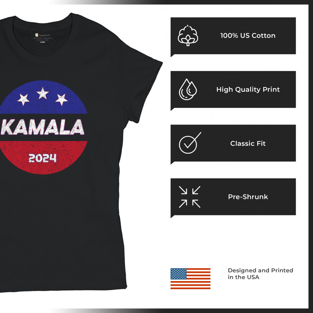 Join the movement and support Kamala Harris in the 2024 election with this premium t-shirt. Designed for anti-Trump supporters, liberals, and Democrats, this shirt showcases a striking design with the American flag and "Kamala Harris 2024" slogan. Made from top-quality materials, it ensures comfort and longevity, perfect for rallies, campaigns, or casual outings. Embrace diversity and advocate for the first female president, representing black Americans, Hispanic Americans, and the LGBTQ community. Wear this tee with pride and contribute to a positive change for America.