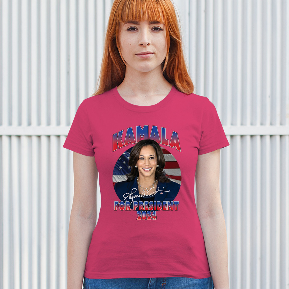 Kamala Harris's 2024 presidential campaign design captures the essence of hope and progress. Featuring a bold and vibrant graphic with her name, portrait, and the American flag, this design symbolizes the fight for liberal values, women's rights, and LGBTQ+ equality. It's perfect for supporters who want to make a statement at rallies, events, or in everyday life. Show your support for a brighter future with this compelling design.