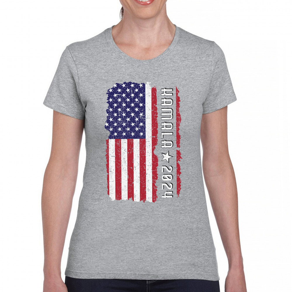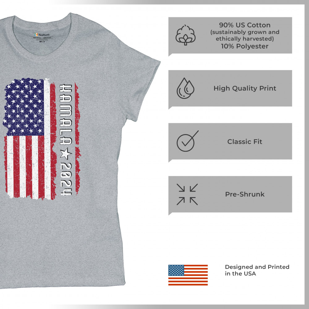 Support Kamala Harris 2024 with a bold design featuring a distressed American flag. Perfect for rallies and political events. Celebrate diversity!