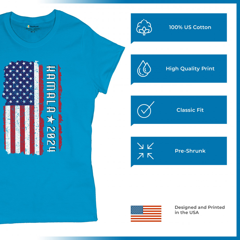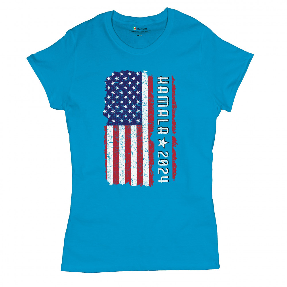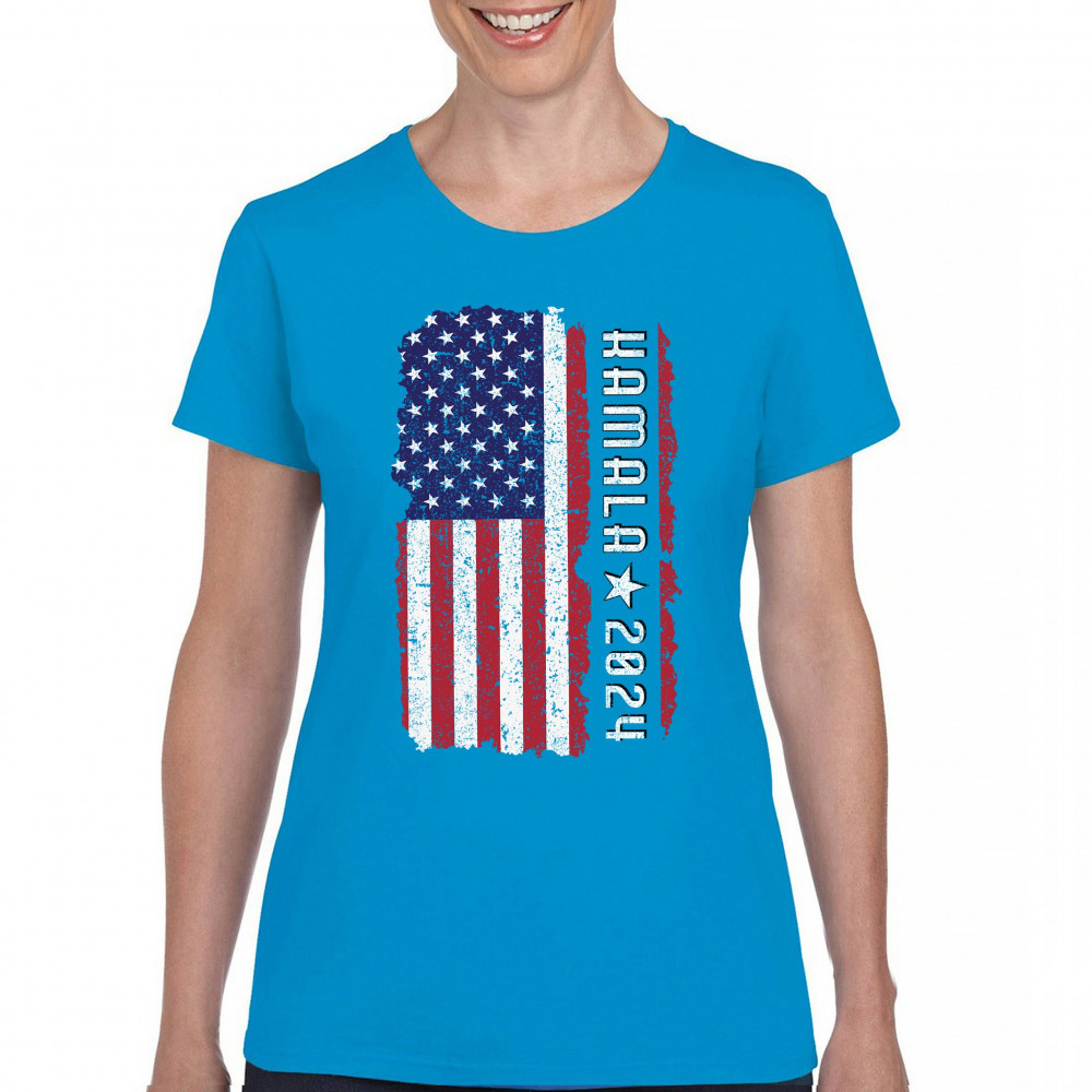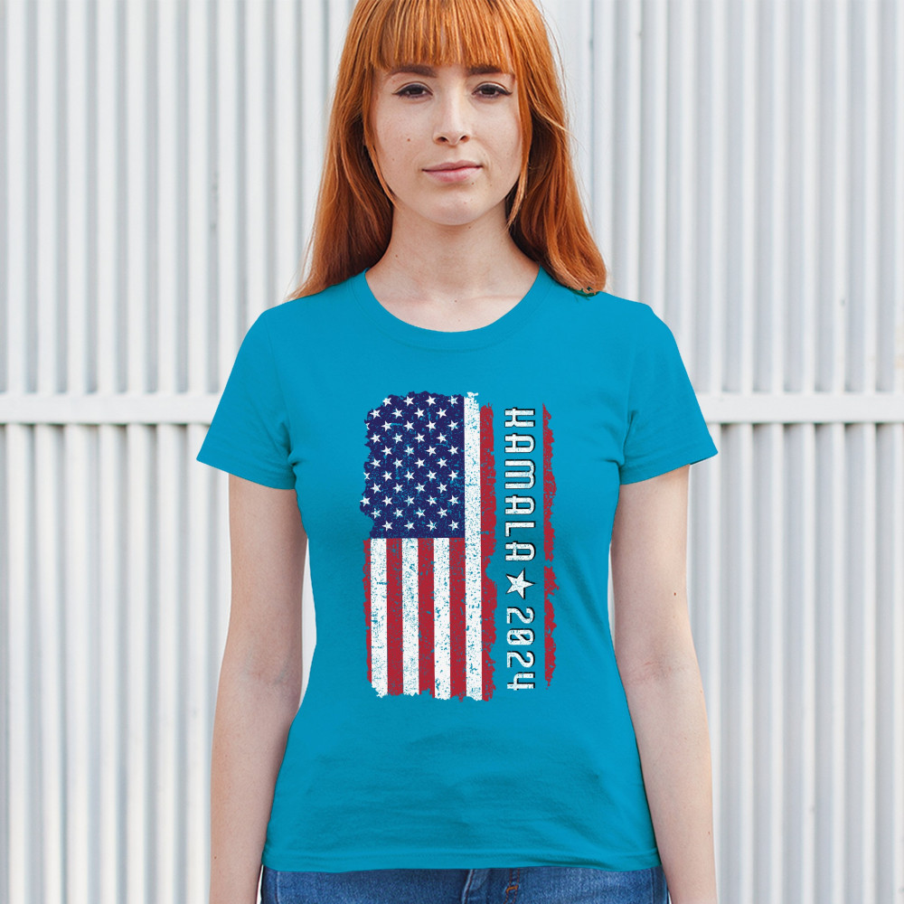 Support Kamala Harris 2024 with a bold design featuring a distressed American flag. Perfect for rallies and political events. Celebrate diversity!