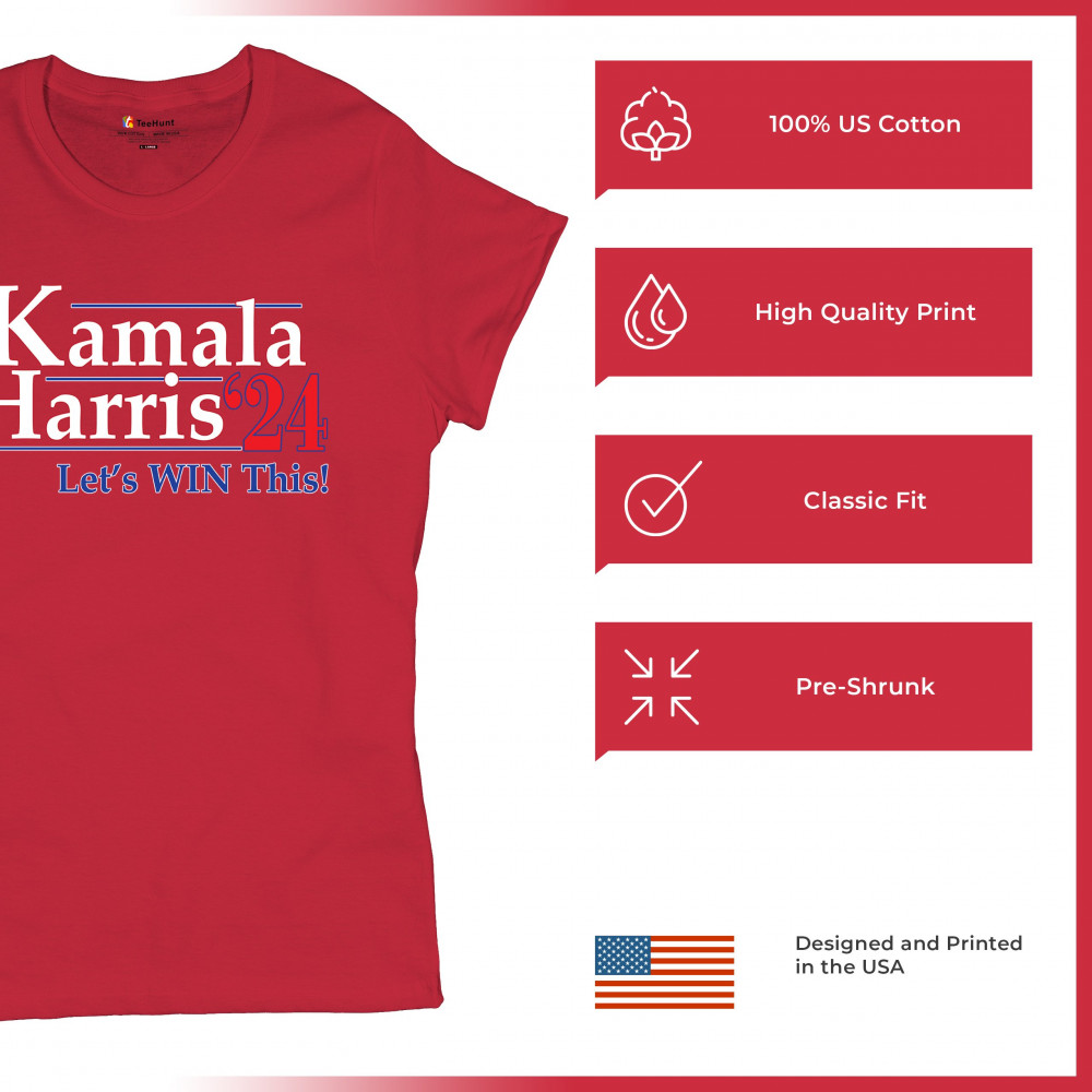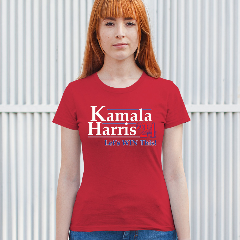 Support Kamala Harris's 2024 campaign with this bold design featuring "Let's WIN This!" Perfect for rallies, elections, and everyday wear.