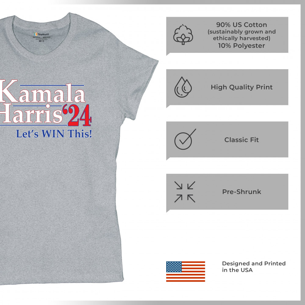Support Kamala Harris's 2024 campaign with this bold design featuring "Let's WIN This!" Perfect for rallies, elections, and everyday wear.