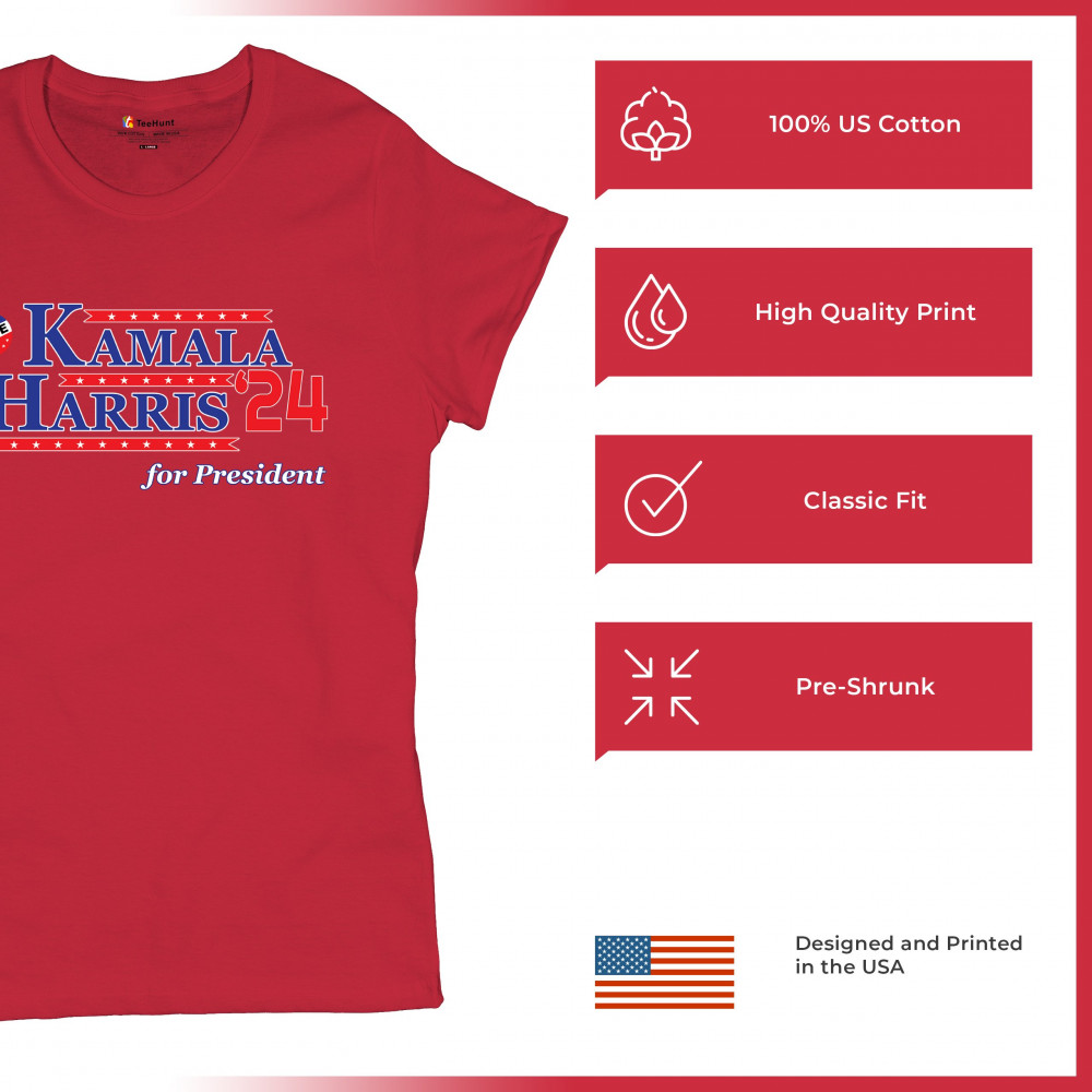 Support Kamala Harris for President in 2024 with this bold, patriotic design. Perfect for liberals, Democrats, and minority communities.