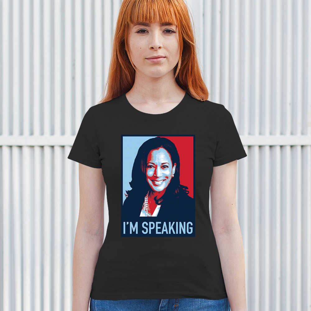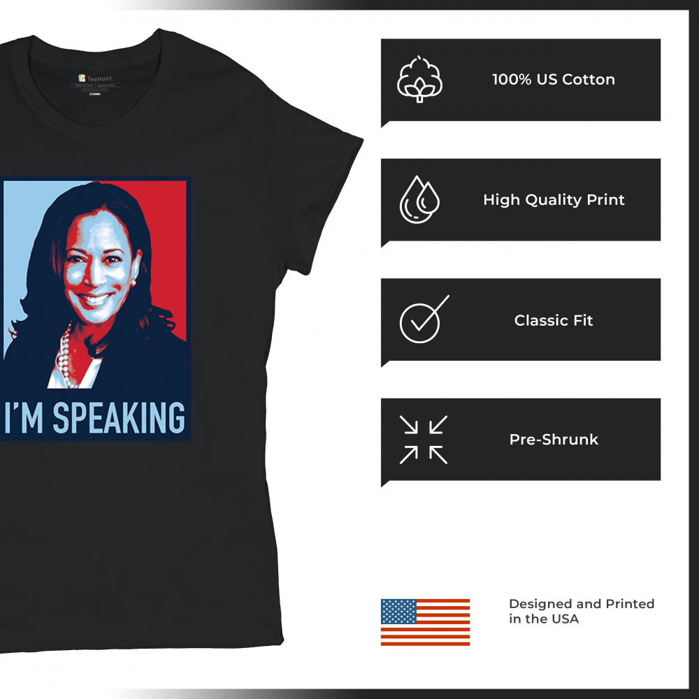 KAMALA HARRIS I'M SPEAKING 2024 t-shirt president 47 vote blue usa women's tee black