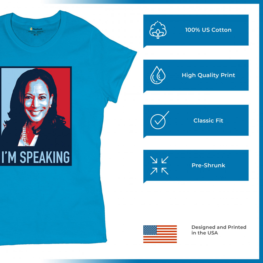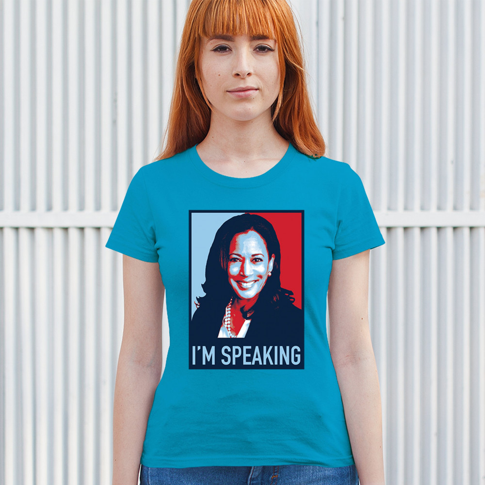 Show your support for Kamala Harris and Tim Walz with this "I'm Speaking" design. A bold statement celebrating liberal values and progressive policies. "Let's Win This"
