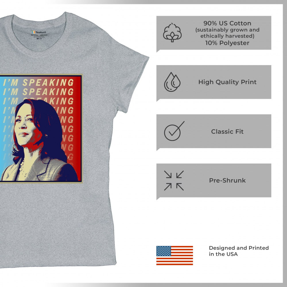 Support Kamala Harris with our "I'M SPEAKING" design, perfect for Democrats, liberals, and anti-Trump supporters. Show your pride and unity.