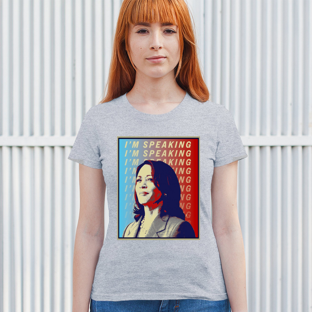 Support Kamala Harris with this bold and inspiring design. "I'M SPEAKING" echoes her powerful voice in the political arena, making it perfect for anti-Trump supporters, liberals, and Democrats. Crafted from durable materials, this design is comfortable for any event, from rallies to casual outings. Celebrate diversity and the historic candidacy of the potential first female president, resonating with black Americans, Hispanic Americans, LGBTQ supporters, and other minorities. Make a statement of hope and progress with this unique design.