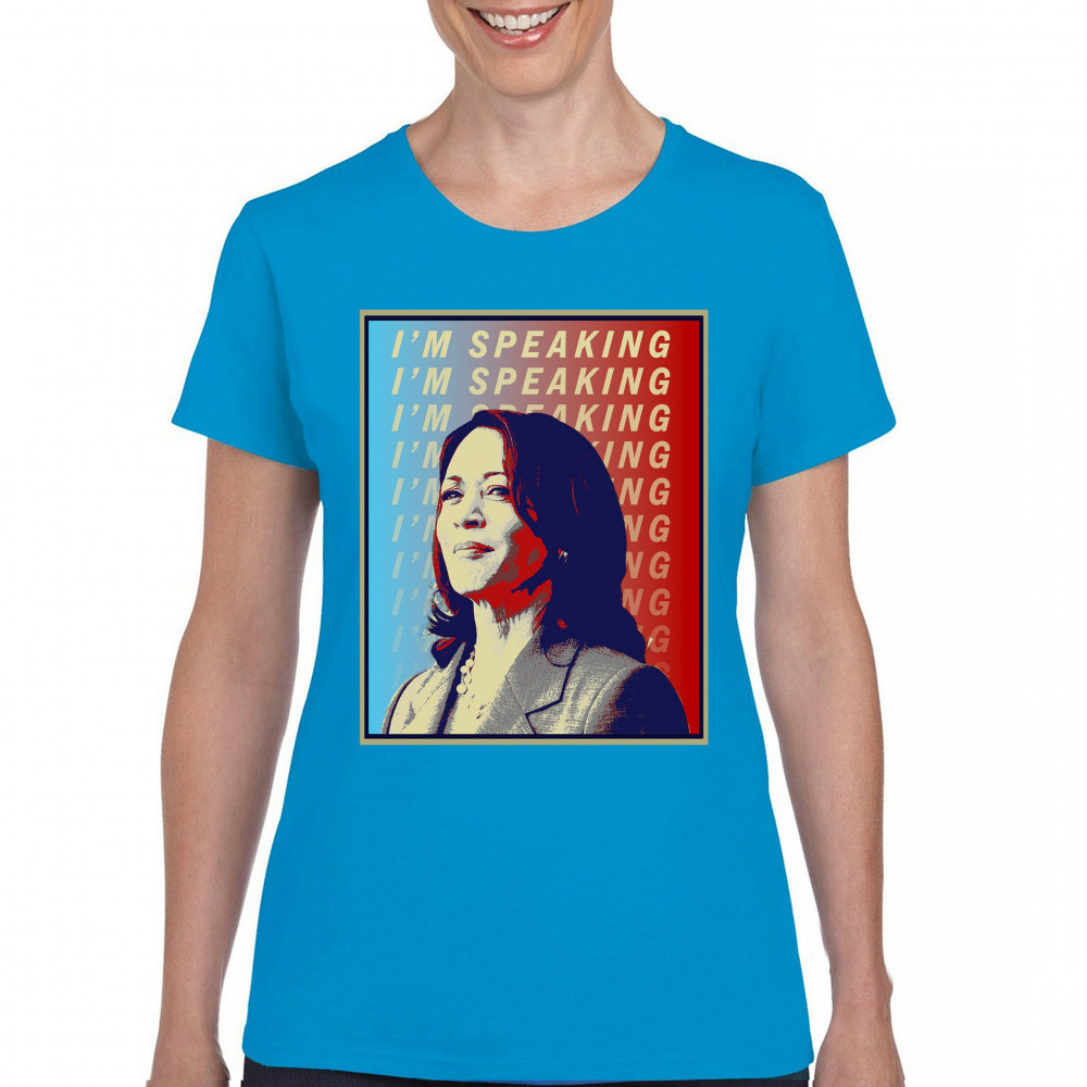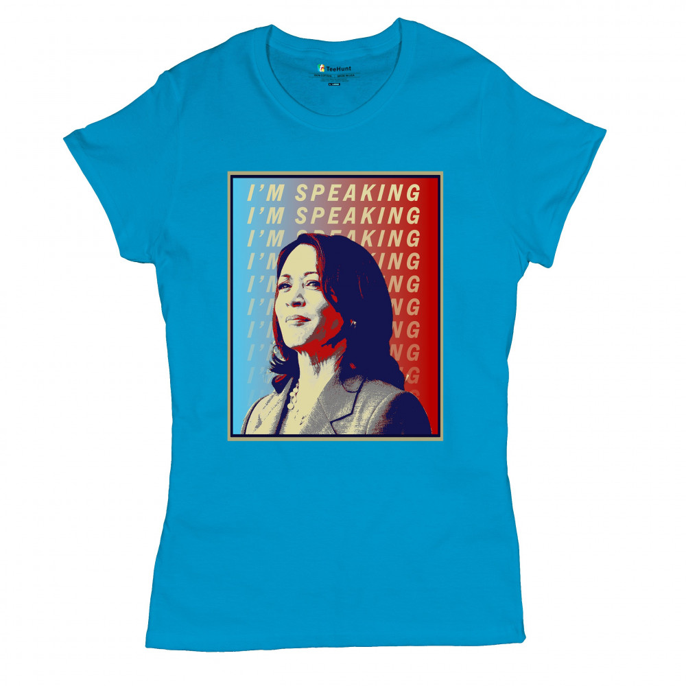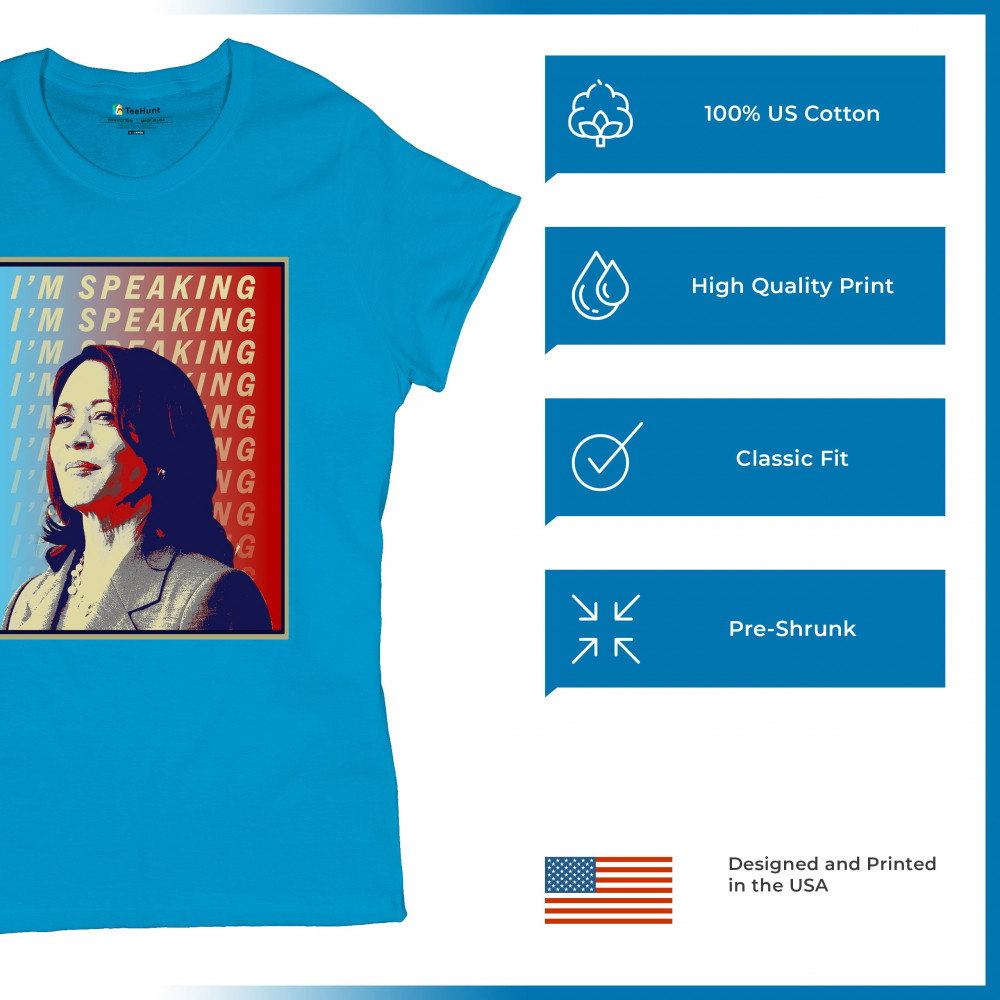 Support Kamala Harris with this bold and inspiring design. "I'M SPEAKING" echoes her powerful voice in the political arena, making it perfect for anti-Trump supporters, liberals, and Democrats. Crafted from durable materials, this design is comfortable for any event, from rallies to casual outings. Celebrate diversity and the historic candidacy of the potential first female president, resonating with black Americans, Hispanic Americans, LGBTQ supporters, and other minorities. Make a statement of hope and progress with this unique design.
