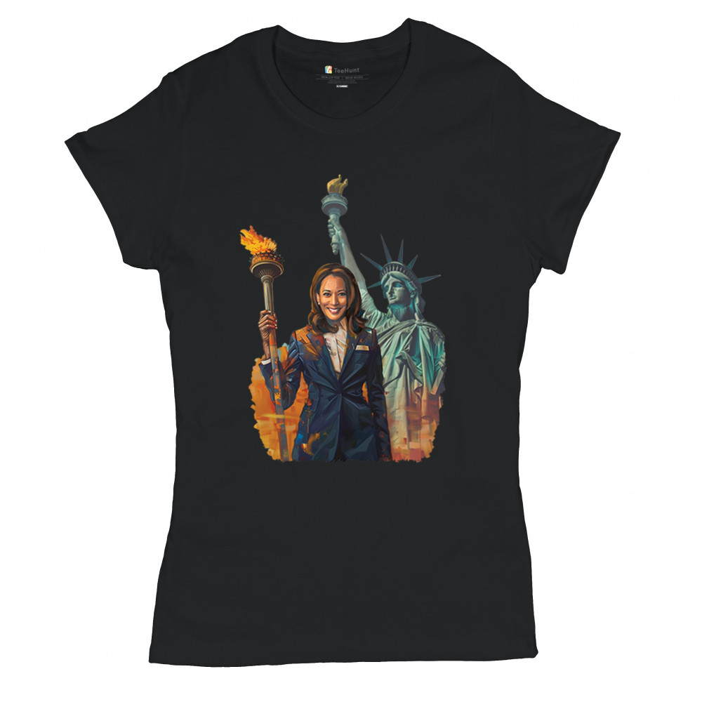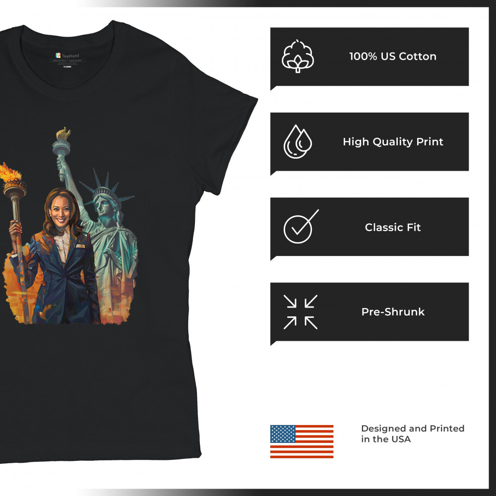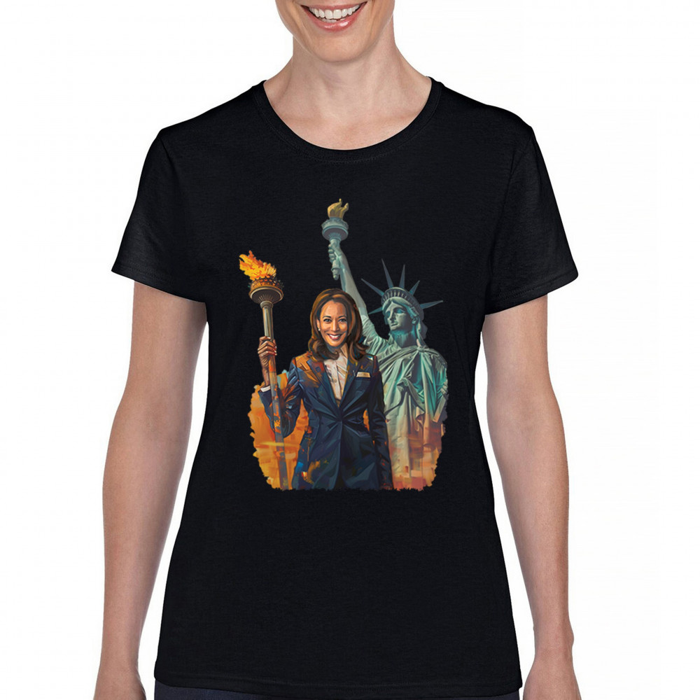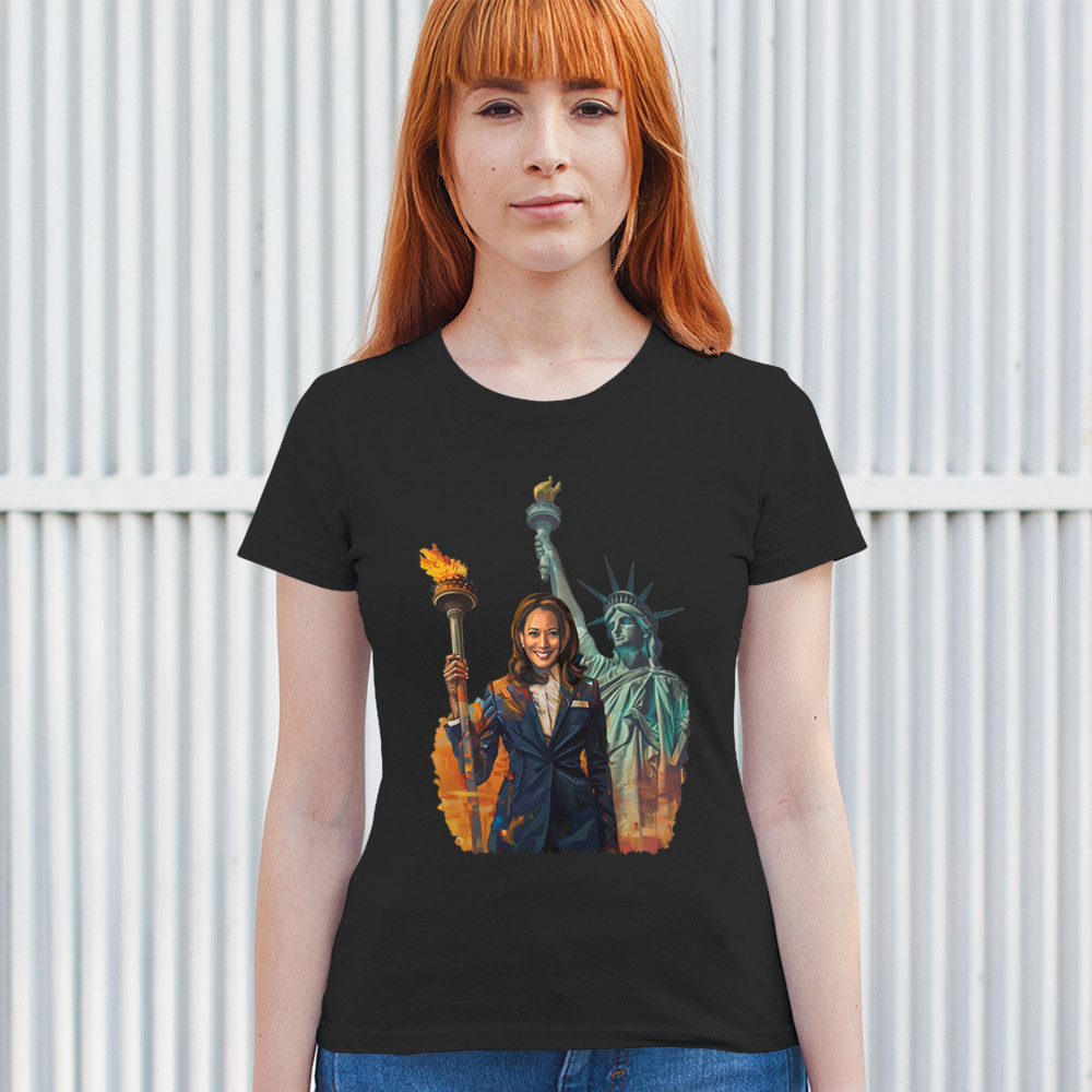 Show your support for Harris-Walz 2024 with this bold design featuring Kamala Harris and the Statue of Liberty. Stand for justice, equality, and a brighter future.