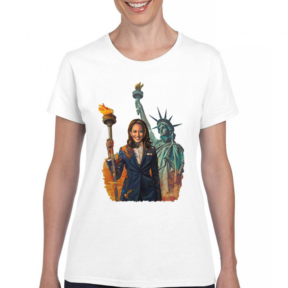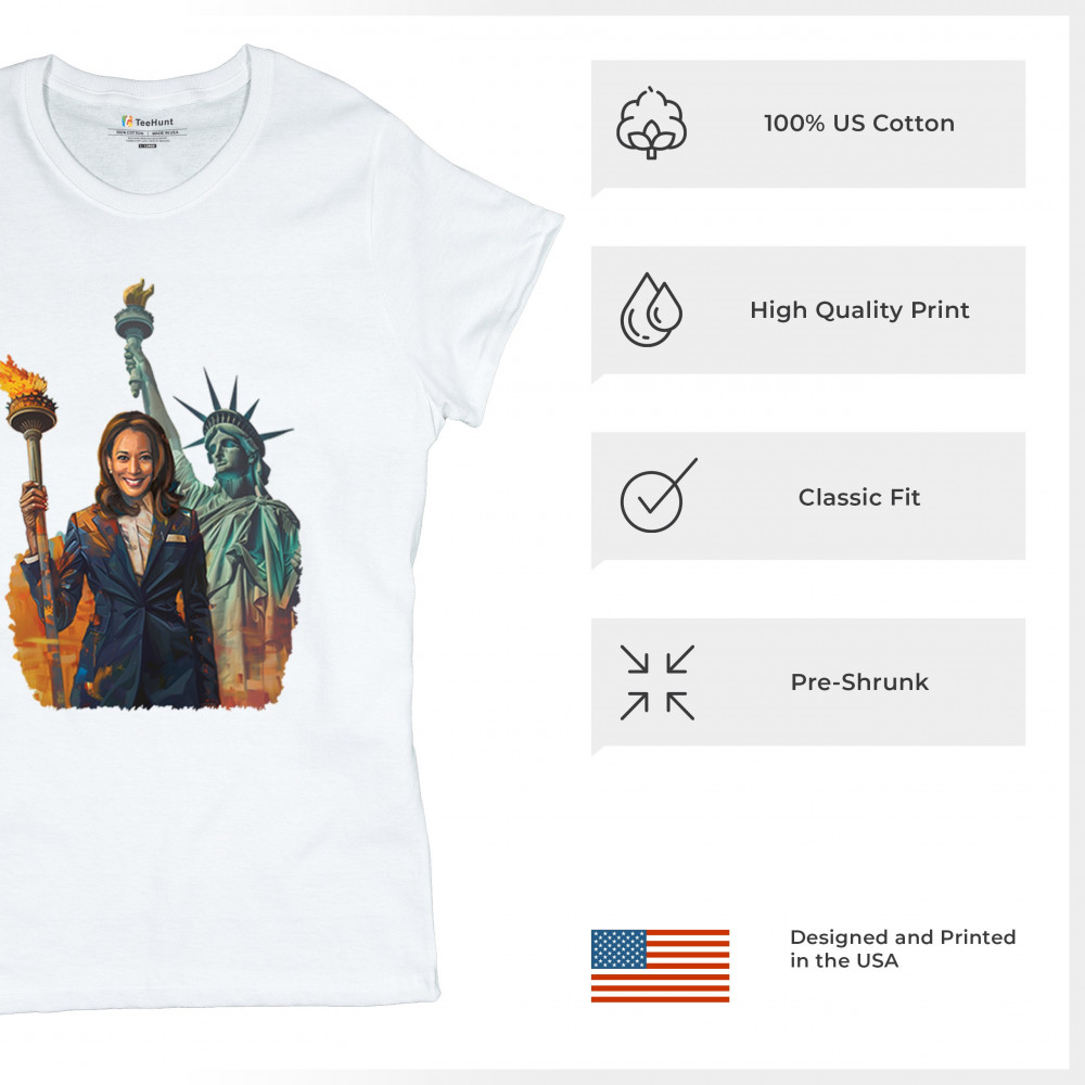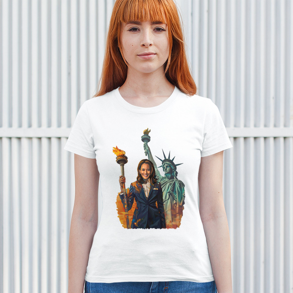 Show your support for Harris-Walz 2024 with this bold design featuring Kamala Harris and the Statue of Liberty. Stand for justice, equality, and a brighter future.