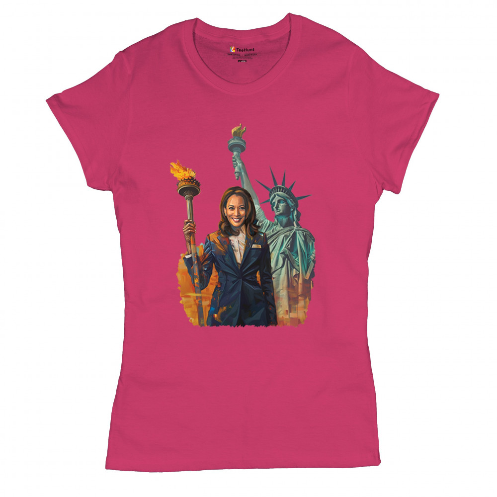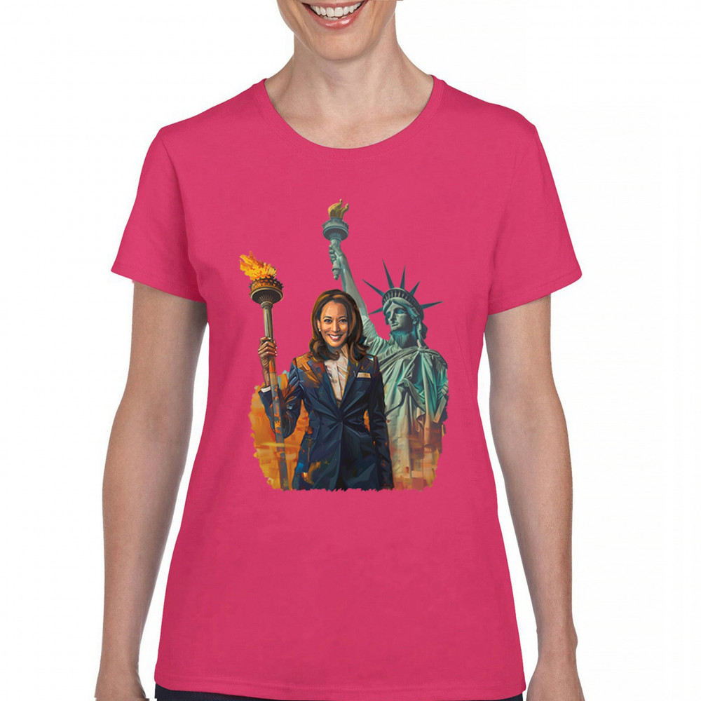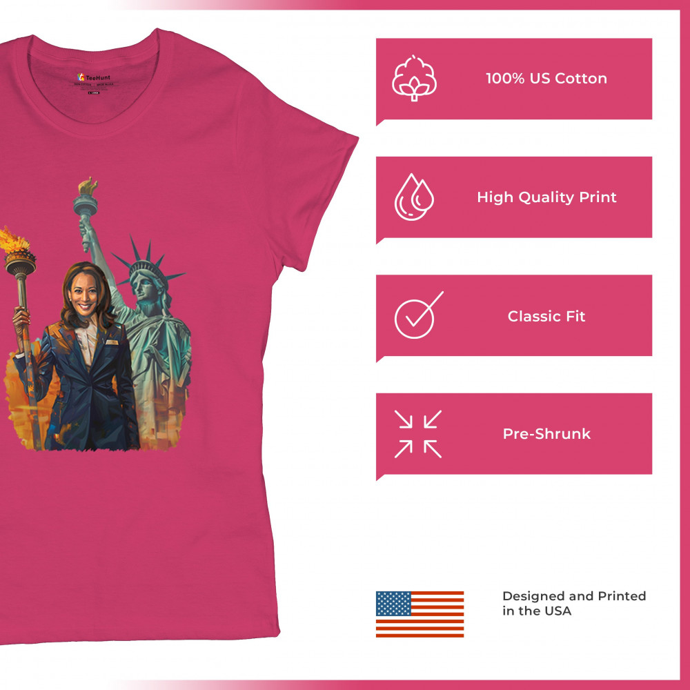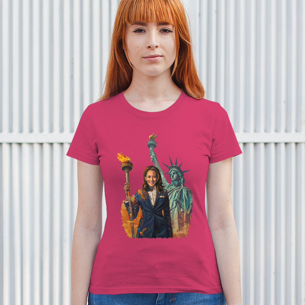 Show your support for Harris-Walz 2024 with this bold design featuring Kamala Harris and the Statue of Liberty. Stand for justice, equality, and a brighter future.