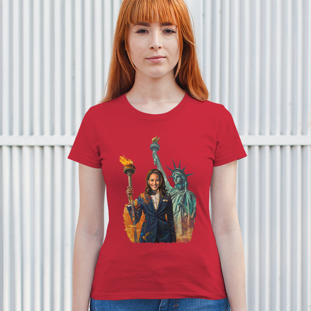 Show your support for Harris-Walz 2024 with this bold design featuring Kamala Harris and the Statue of Liberty. Stand for justice, equality, and a brighter future.