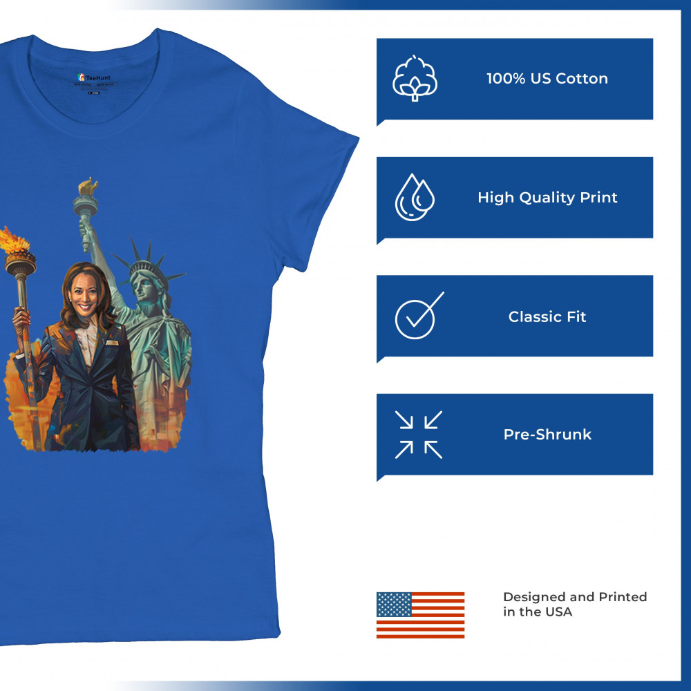 Show your support for Harris-Walz 2024 with this bold design featuring Kamala Harris and the Statue of Liberty. Stand for justice, equality, and a brighter future.