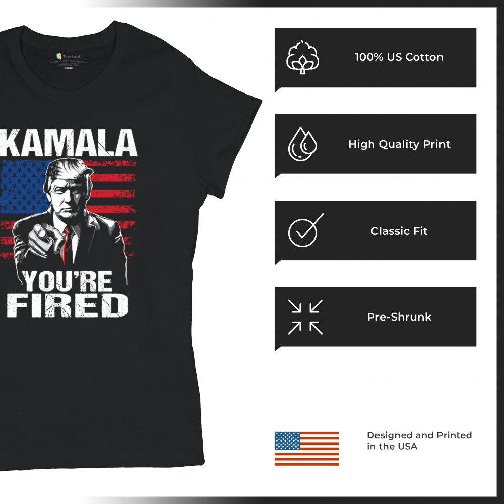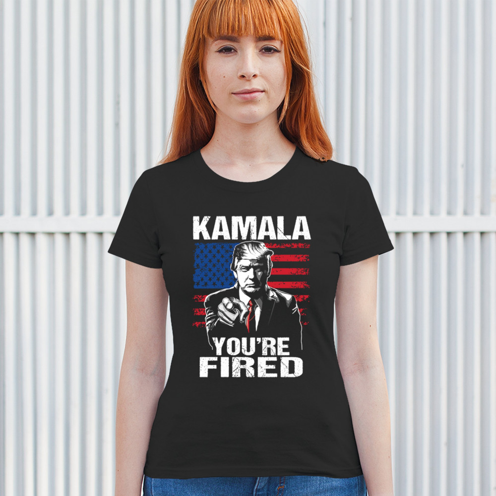 Bold "Kamala, You’re Fired" design for Trump supporters. Celebrate Republican values, America First, and the Red Wave with this patriotic statement.