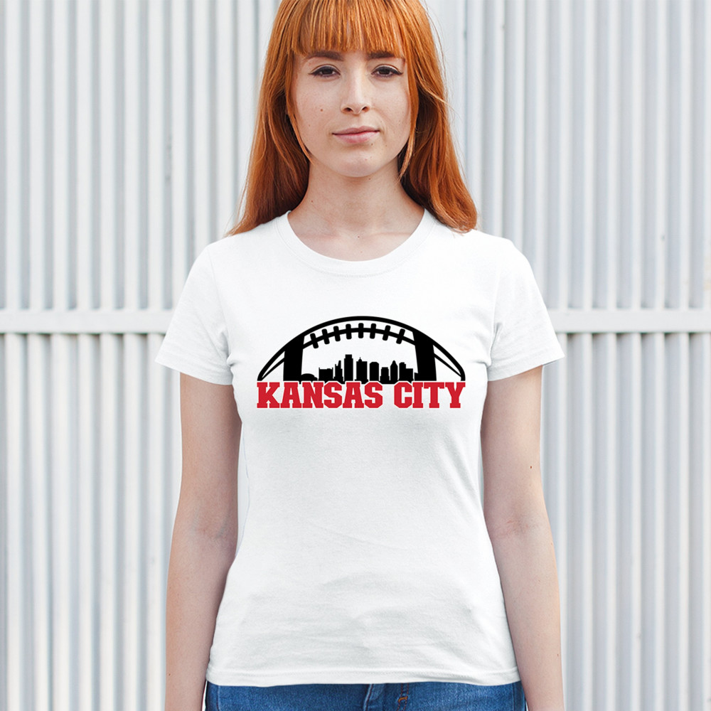 Celebrate Kansas City with a bold football design featuring the city skyline. Perfect for game days, tailgates, or proud sports fans.