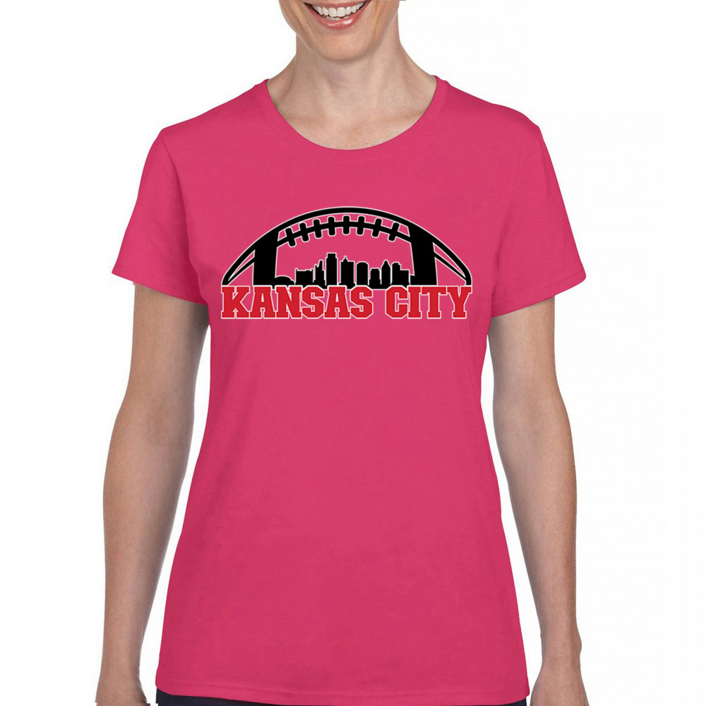 Celebrate Kansas City with a bold football design featuring the city skyline. Perfect for game days, tailgates, or proud sports fans.