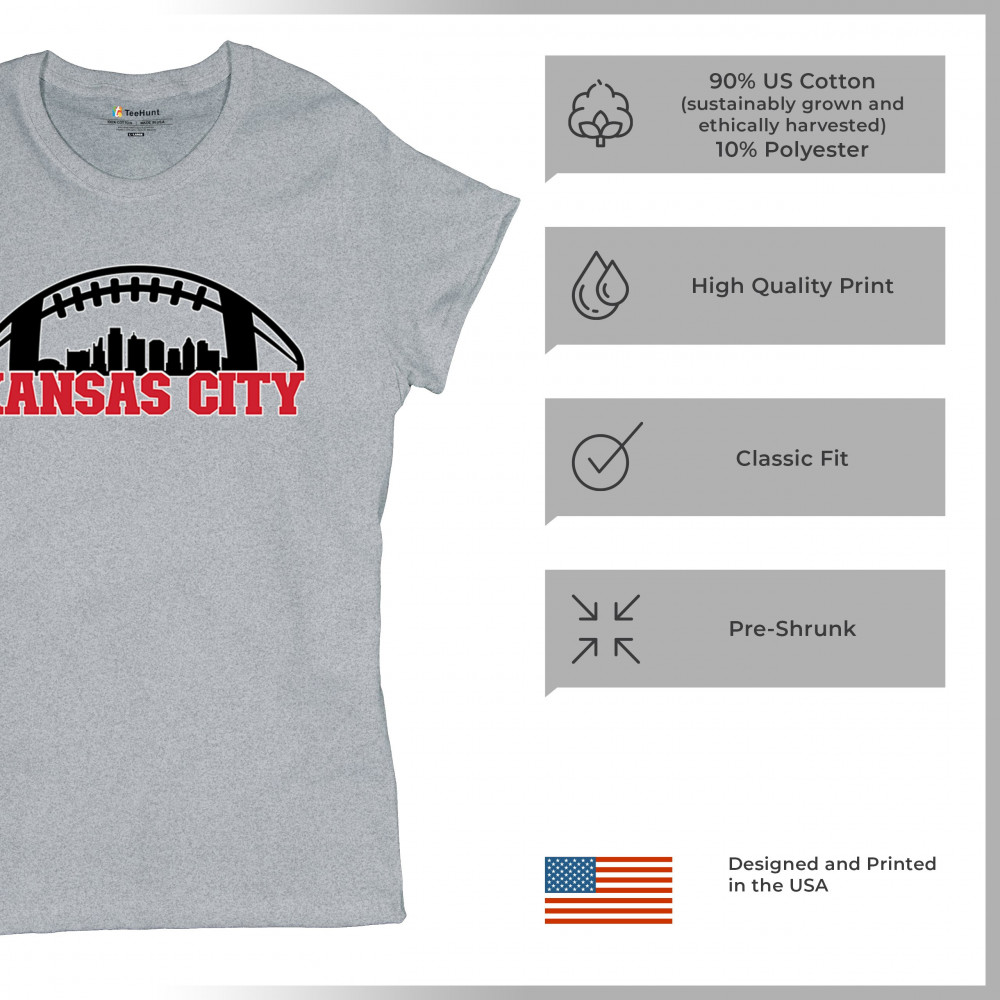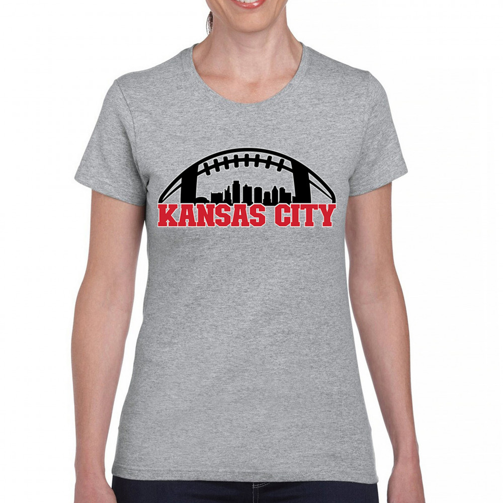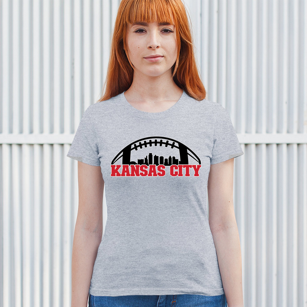 Celebrate Kansas City with a bold football design featuring the city skyline. Perfect for game days, tailgates, or proud sports fans.