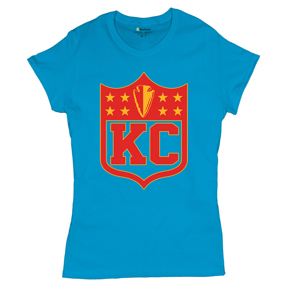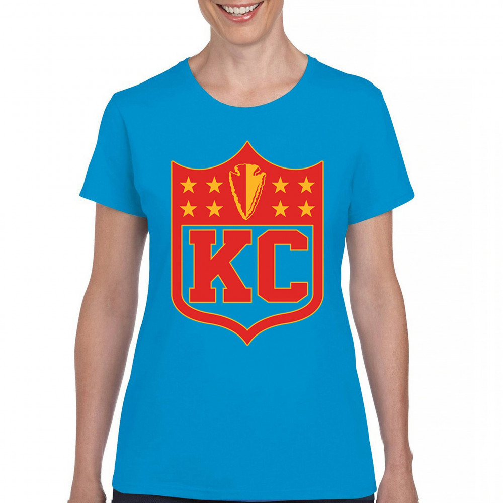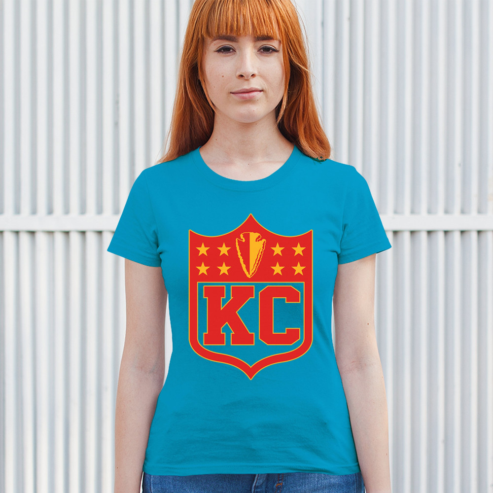 Kansas KC shield design celebrating red and gold pride, heart of America football, playoff vibes, river city culture, and big game energy.