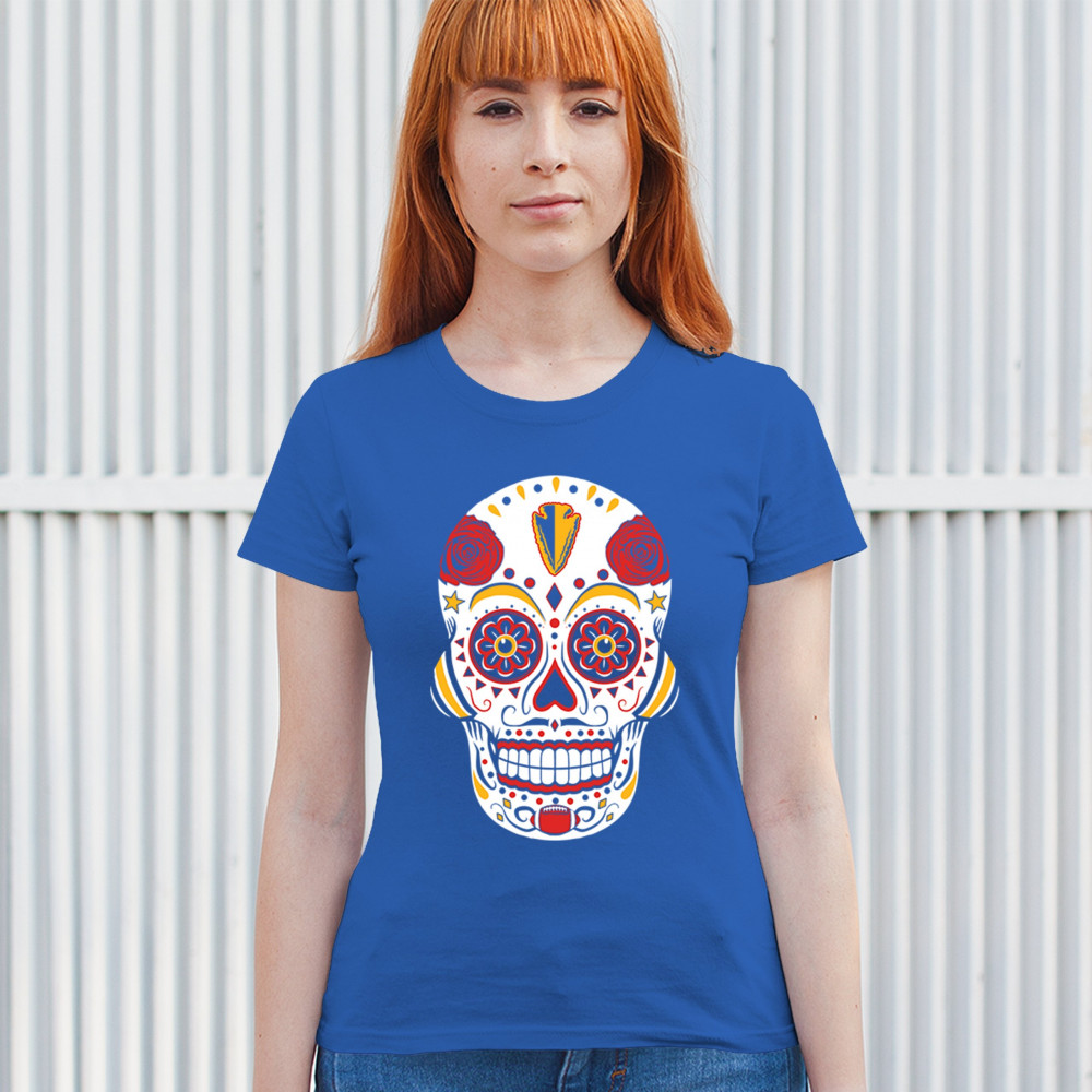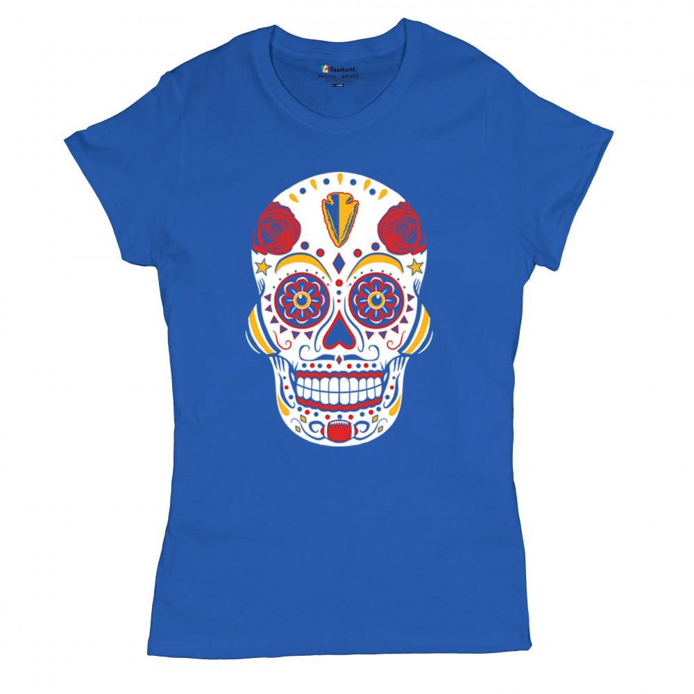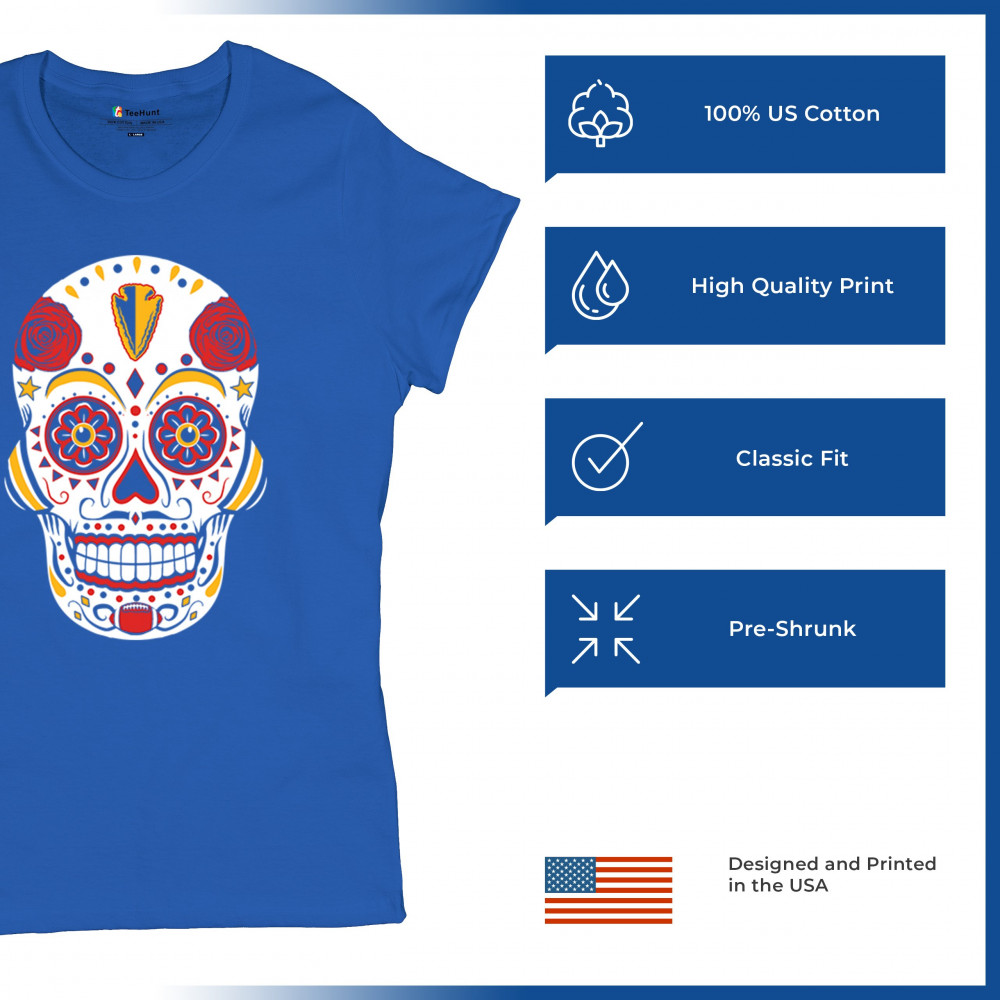 Celebrate Kansas City football with this Sugar Skull design inspired by Dia de los Muertos. Featuring Heart of America pride, red & gold tradition, and City of Fountains identity, it’s made for playoff energy, tailgate culture, and fantasy league rivalries. A bold calavera for KC fans.