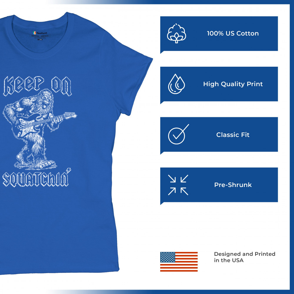 Celebrate music and adventure with the "Keep on Squatchin’" design! Bigfoot rocking a guitar makes this perfect for Sasquatch and music fans.