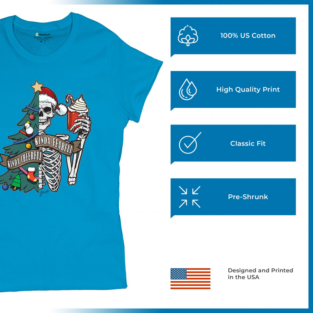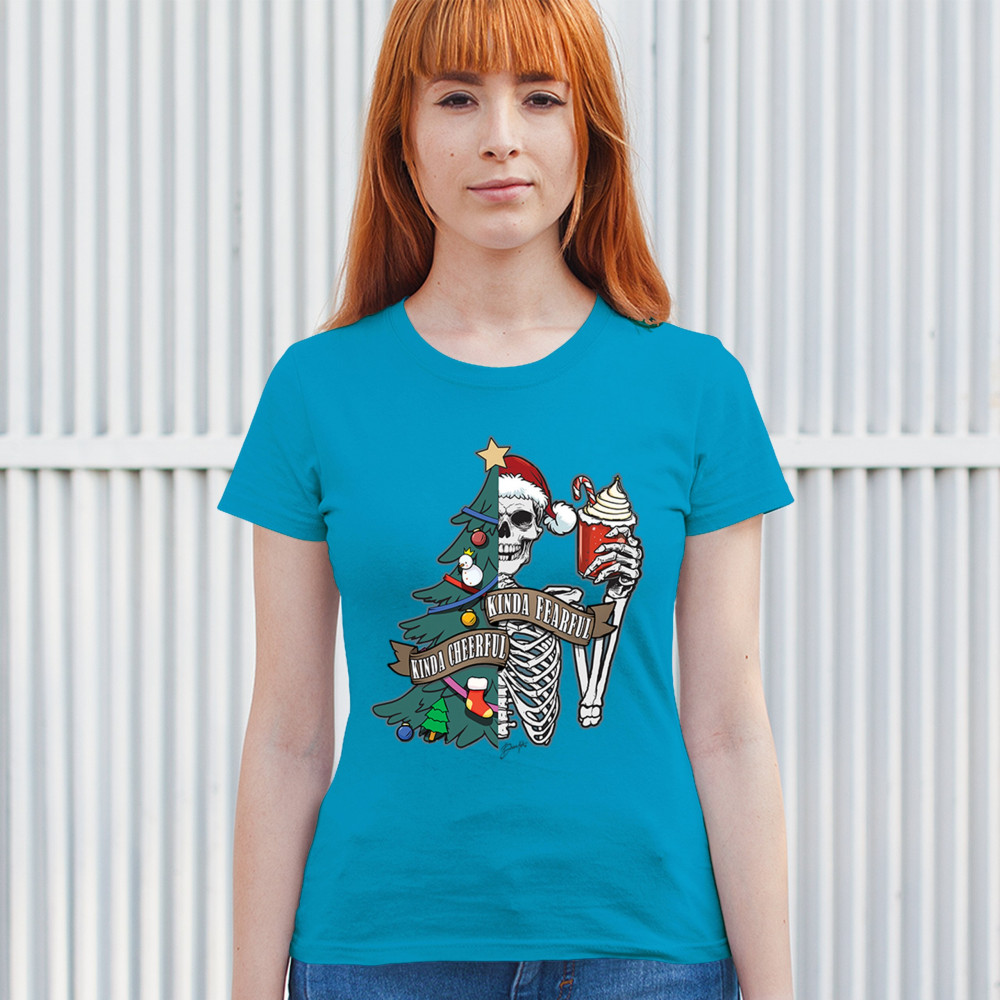 This creative Kinda Cheerful, Kinda Fearful design is a perfect blend of festive and spooky fun! Featuring a half-decorated Christmas tree and skeleton, it’s ideal for those who love combining Halloween and Christmas vibes. Great for secret Santa gifts, matching holiday pajamas, or rocking at your next ugly sweater contest. Perfect for office parties, family mornings, or simply adding some unique charm to your Feliz Navidad celebrations.
