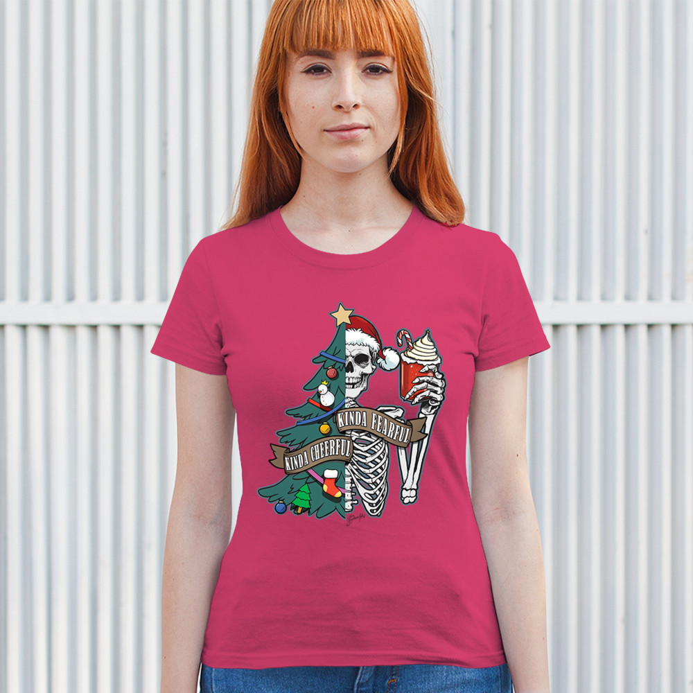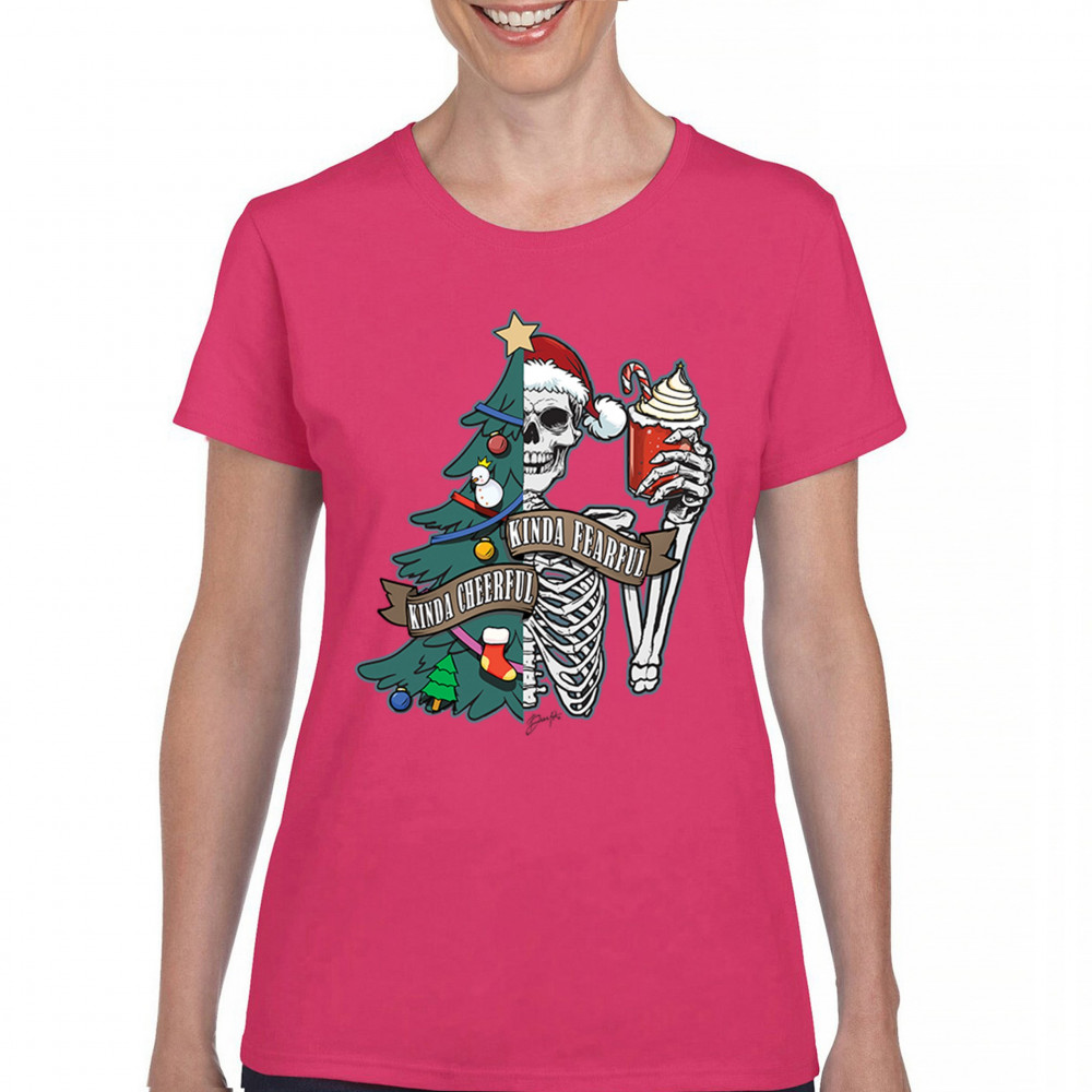 This creative Kinda Cheerful, Kinda Fearful design is a perfect blend of festive and spooky fun! Featuring a half-decorated Christmas tree and skeleton, it’s ideal for those who love combining Halloween and Christmas vibes. Great for secret Santa gifts, matching holiday pajamas, or rocking at your next ugly sweater contest. Perfect for office parties, family mornings, or simply adding some unique charm to your Feliz Navidad celebrations.