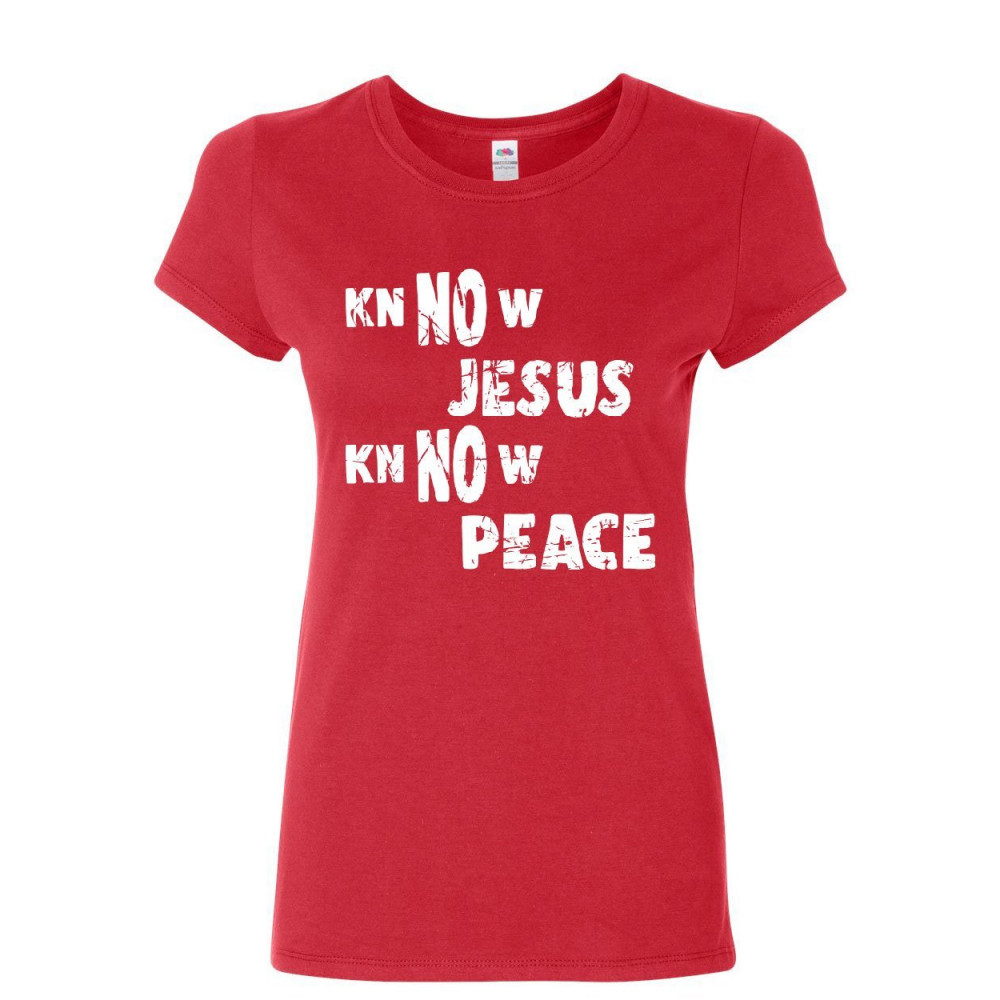 KNOW JESUS KNOW PEACE women's t-shirt religion christian catholic faith shirt red