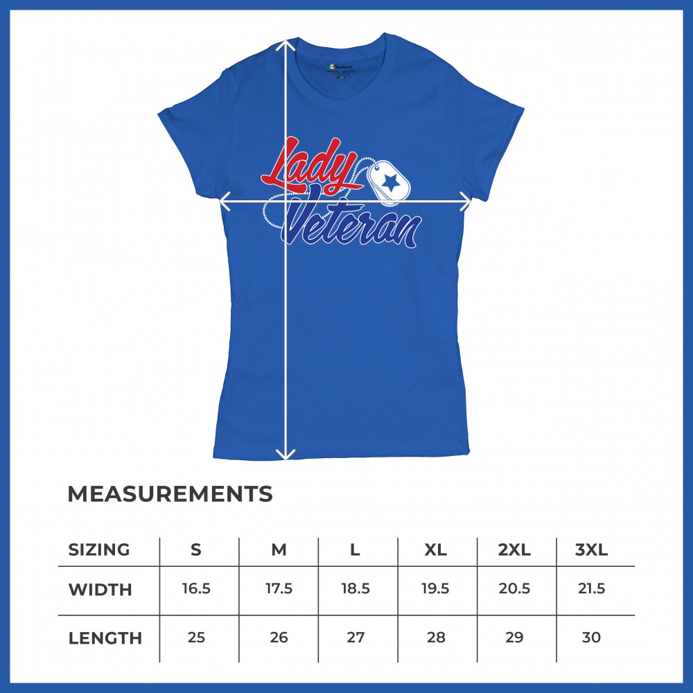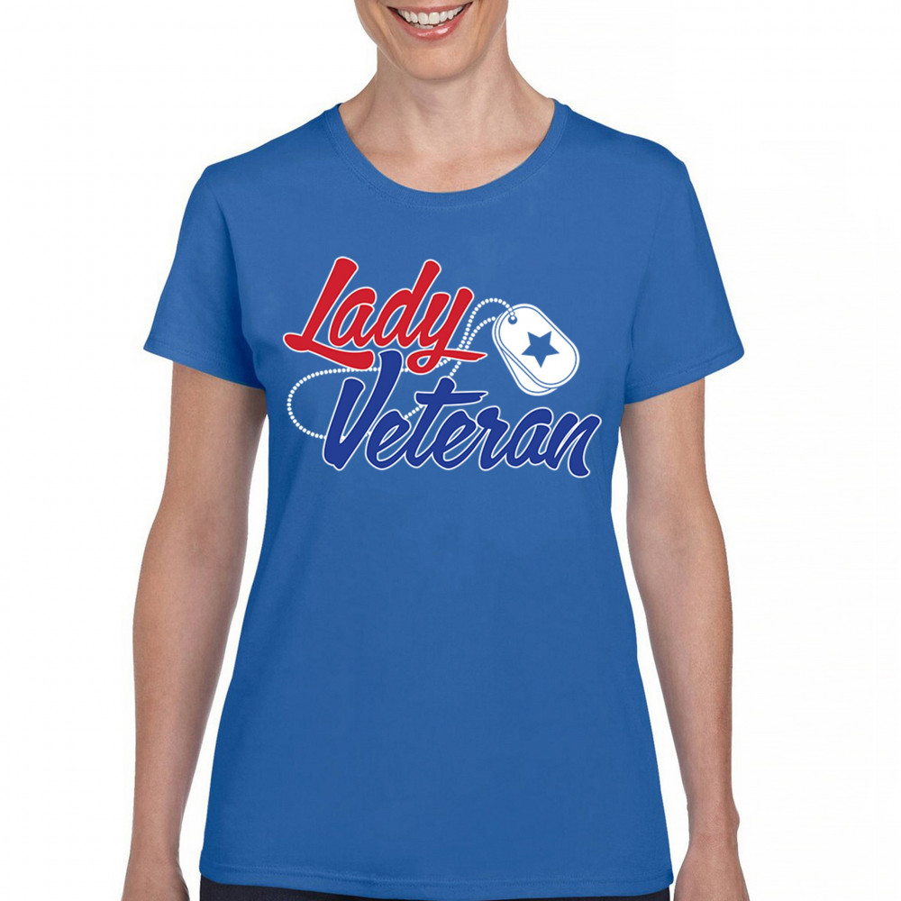 Celebrate female veterans with our "Lady Veteran" shirt. Bold red and blue design, perfect for Veterans Day and everyday wear. Honor and pride in service.