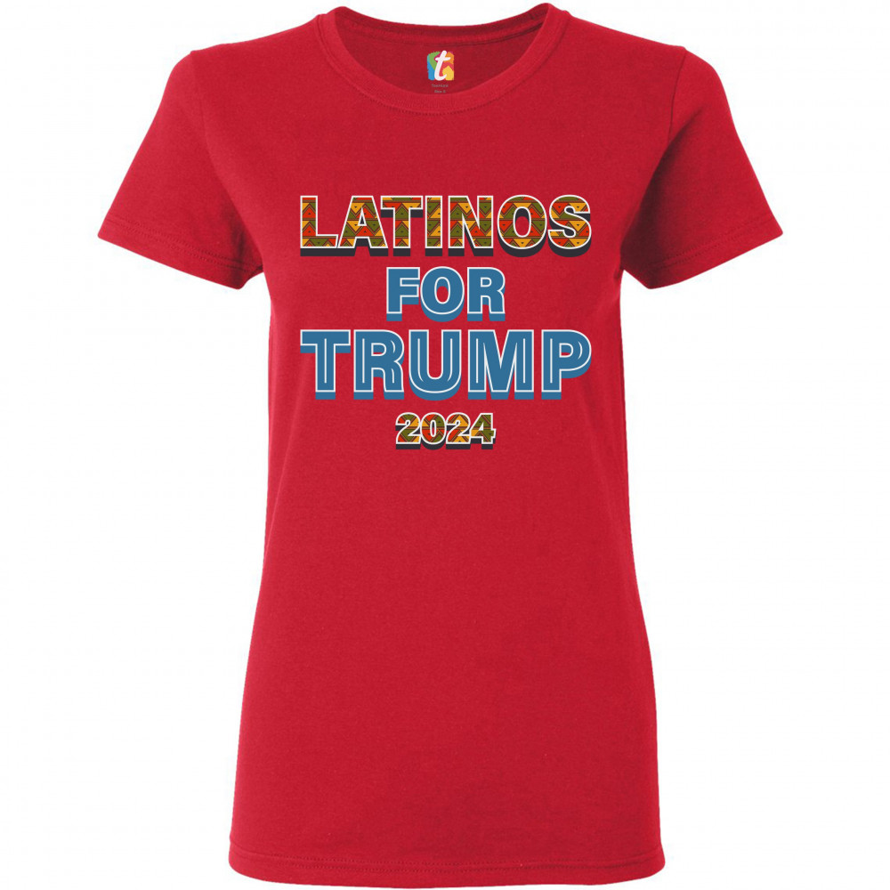 LATINOS FOR TRUMP 2024 t-shirt keep america great conservative maga women's tee red